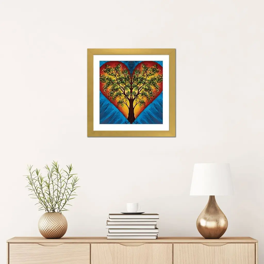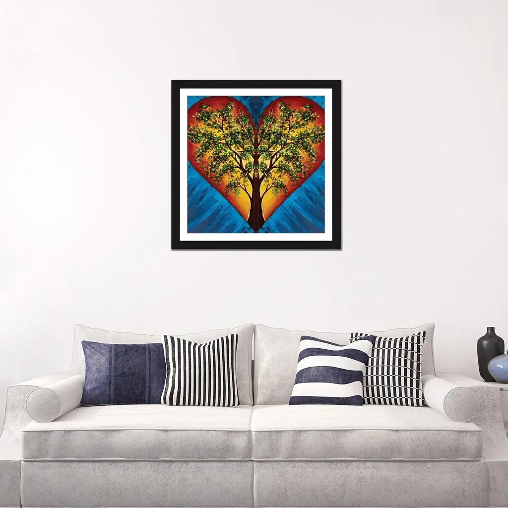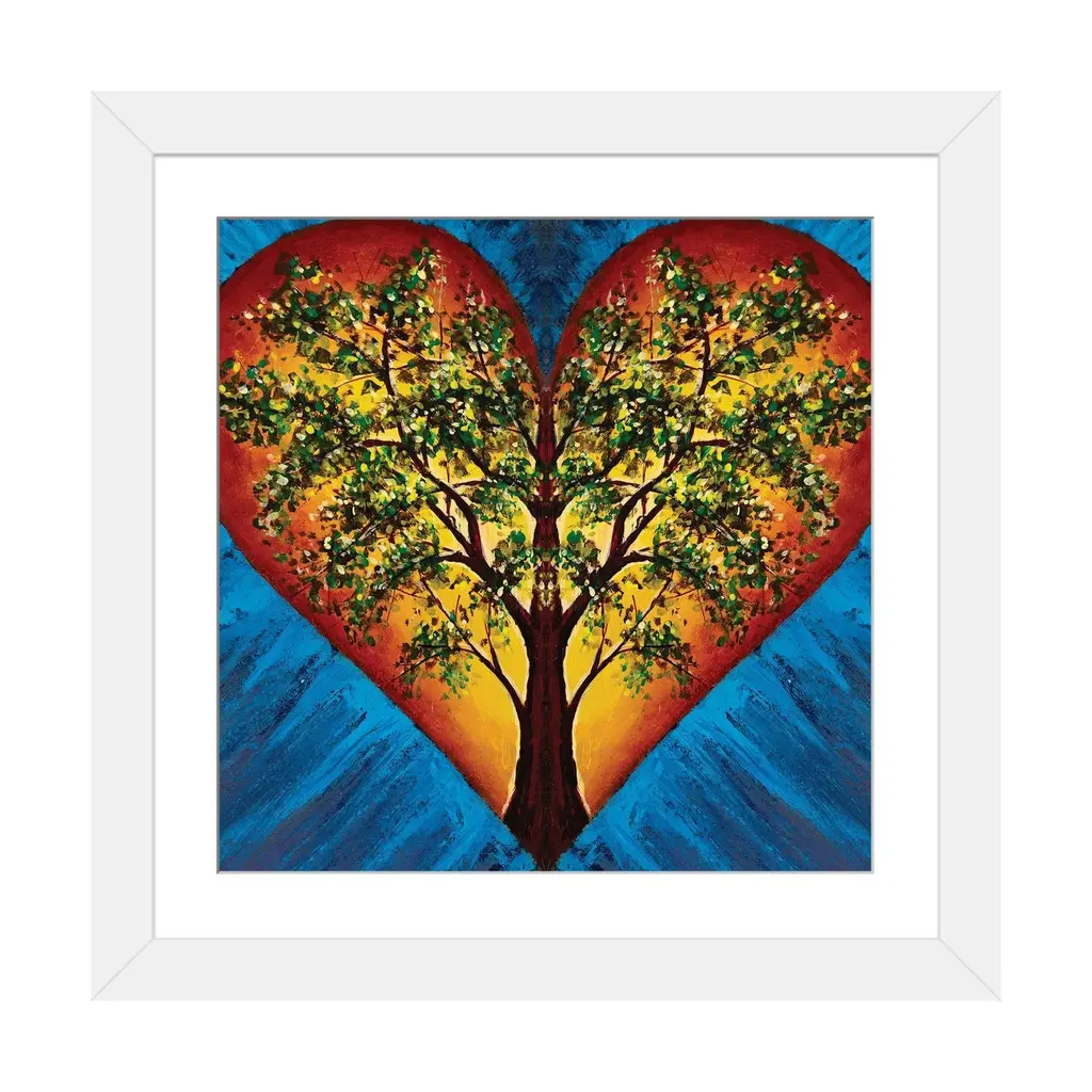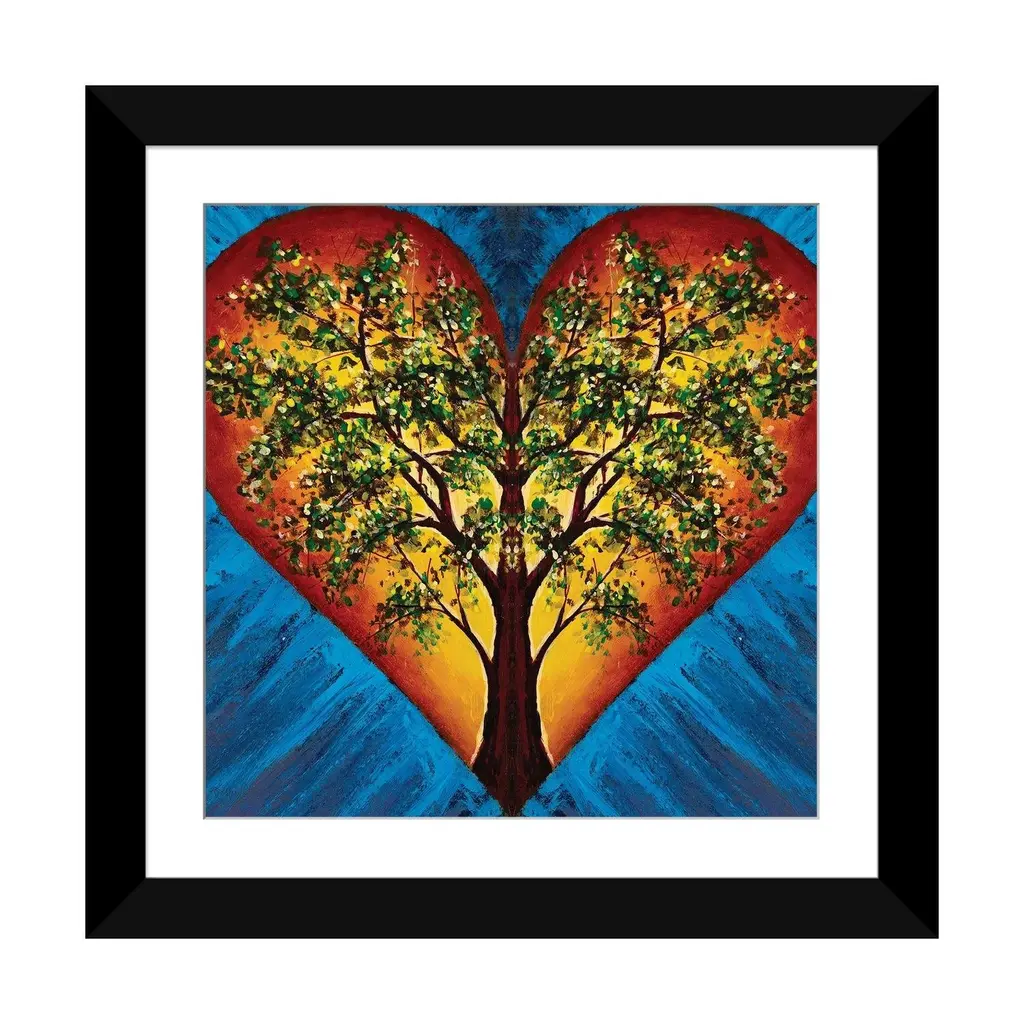 Icanvas "Heart With Blossoming Tree Of Life Inside On Blue Background" By Valery Rybakow - Walnut - 16x16x1