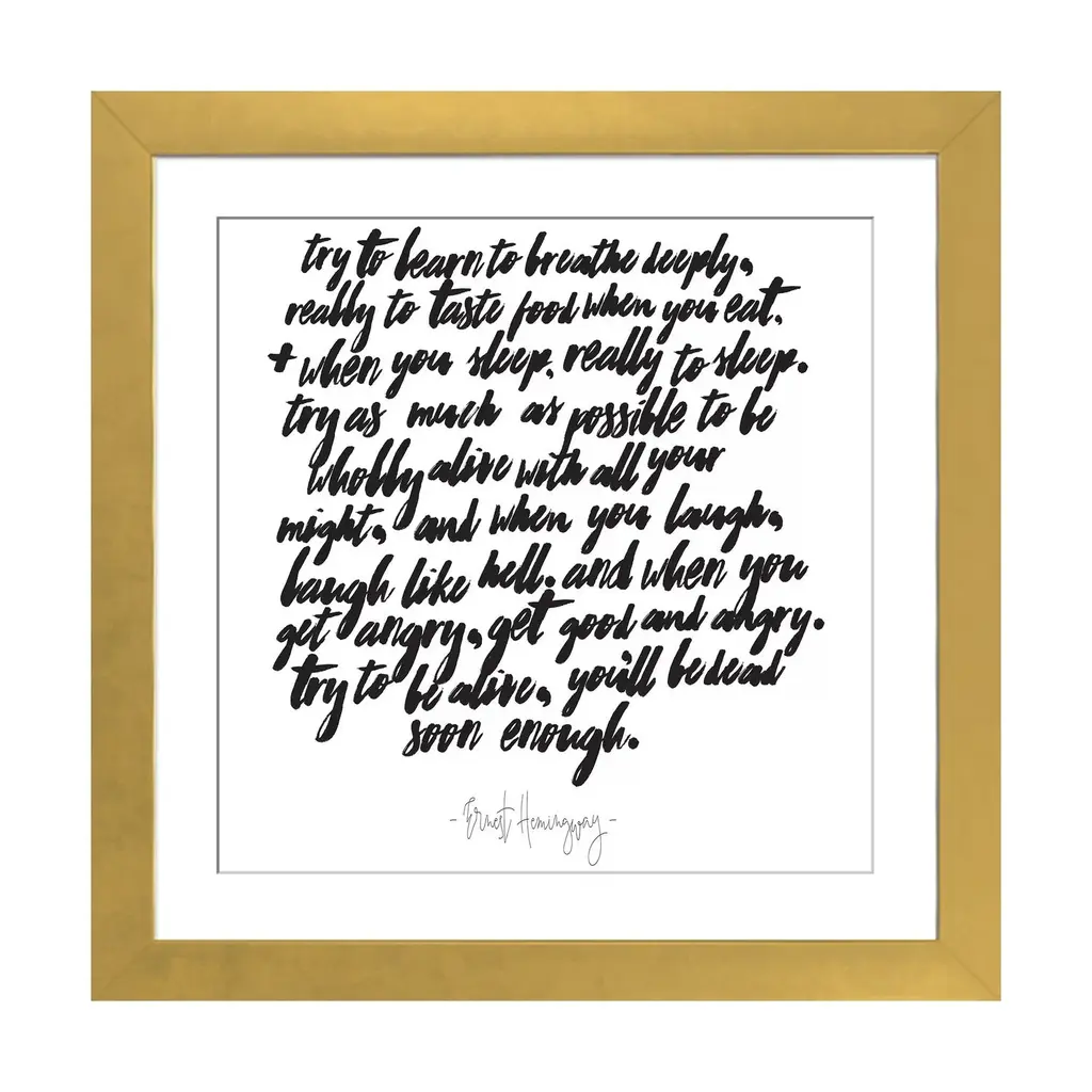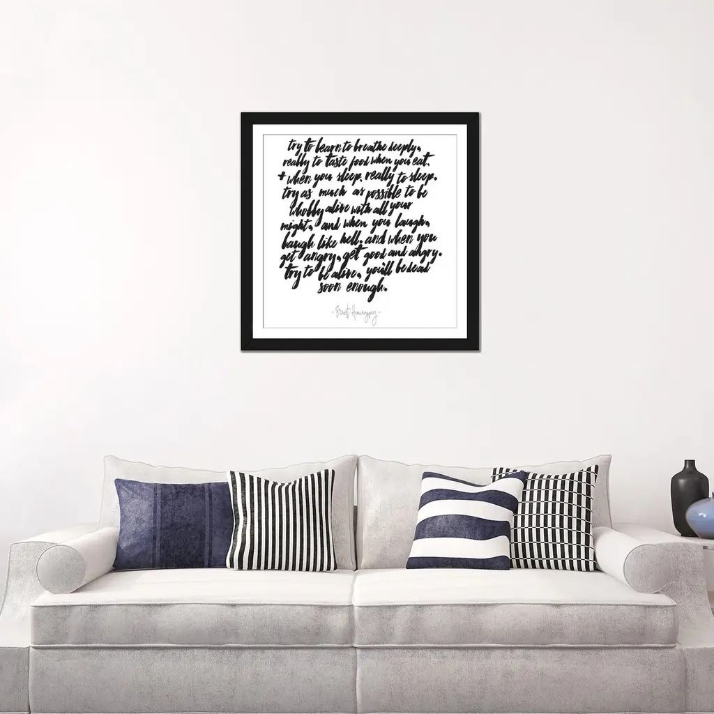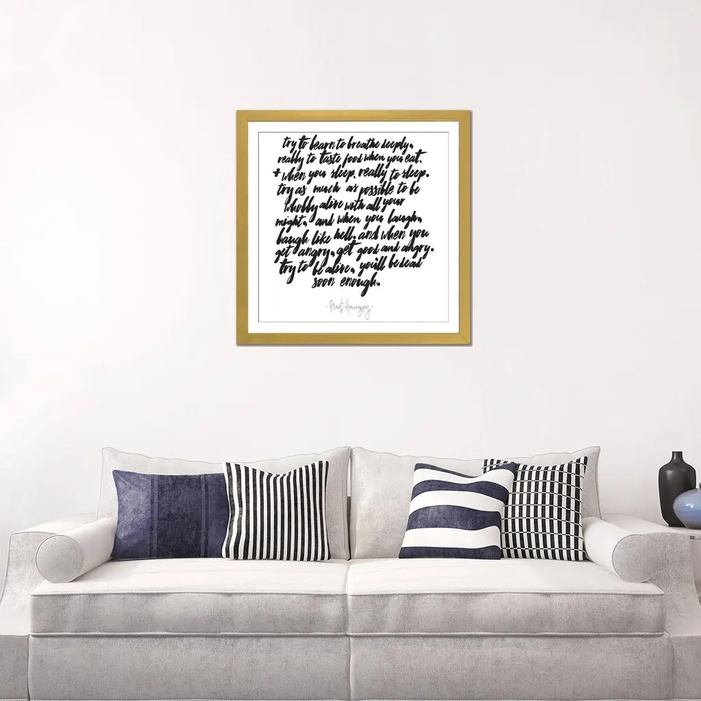 Icanvas "Hemingway Try To Be Alive Quote" By Honeymoon Hotel - Walnut - 24x24x1
