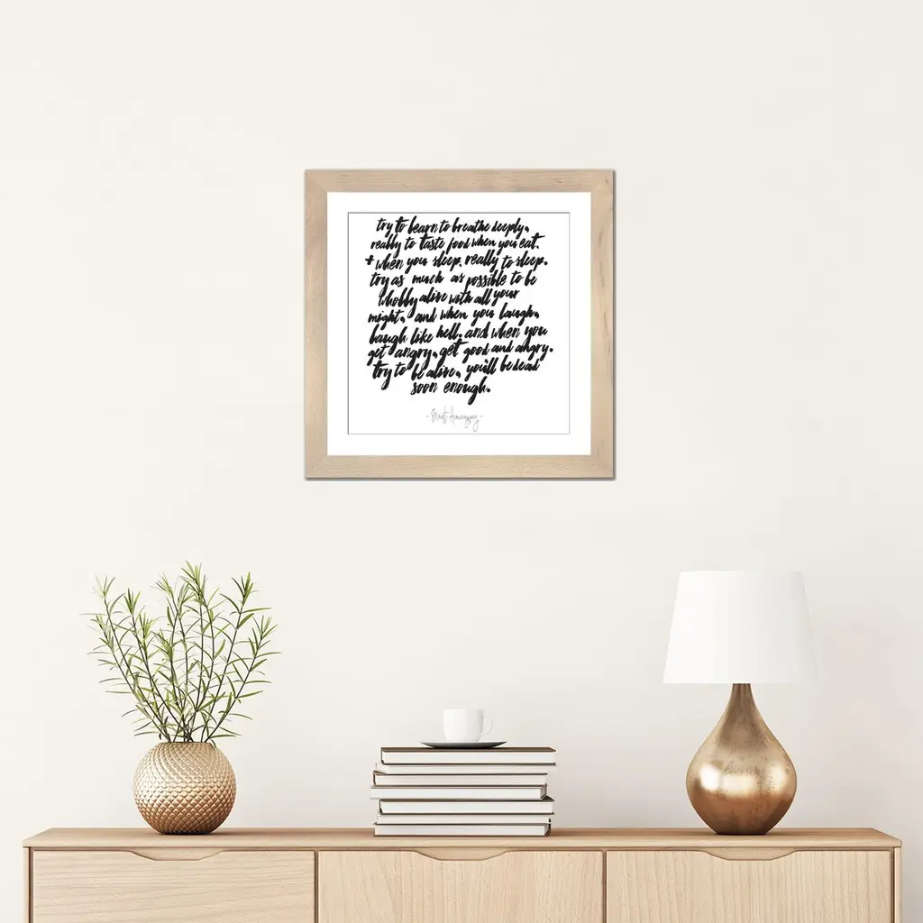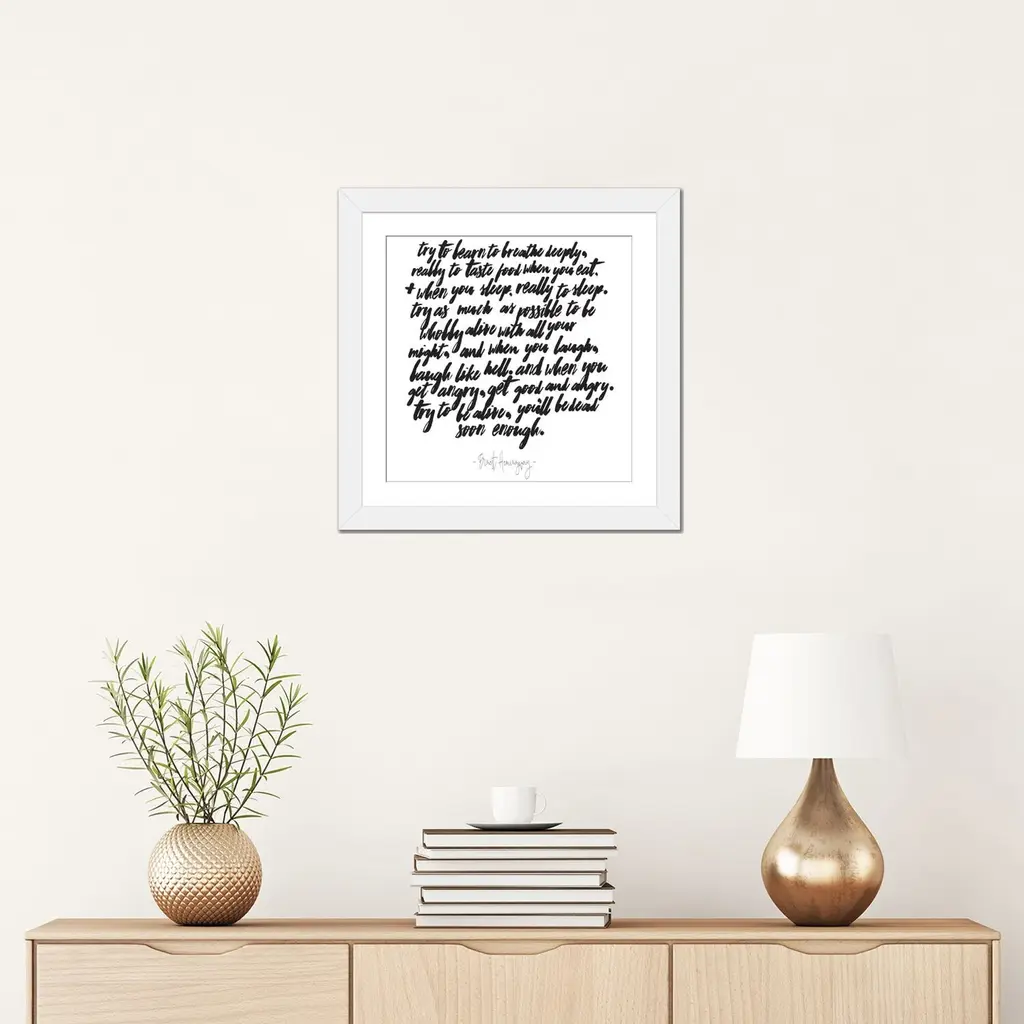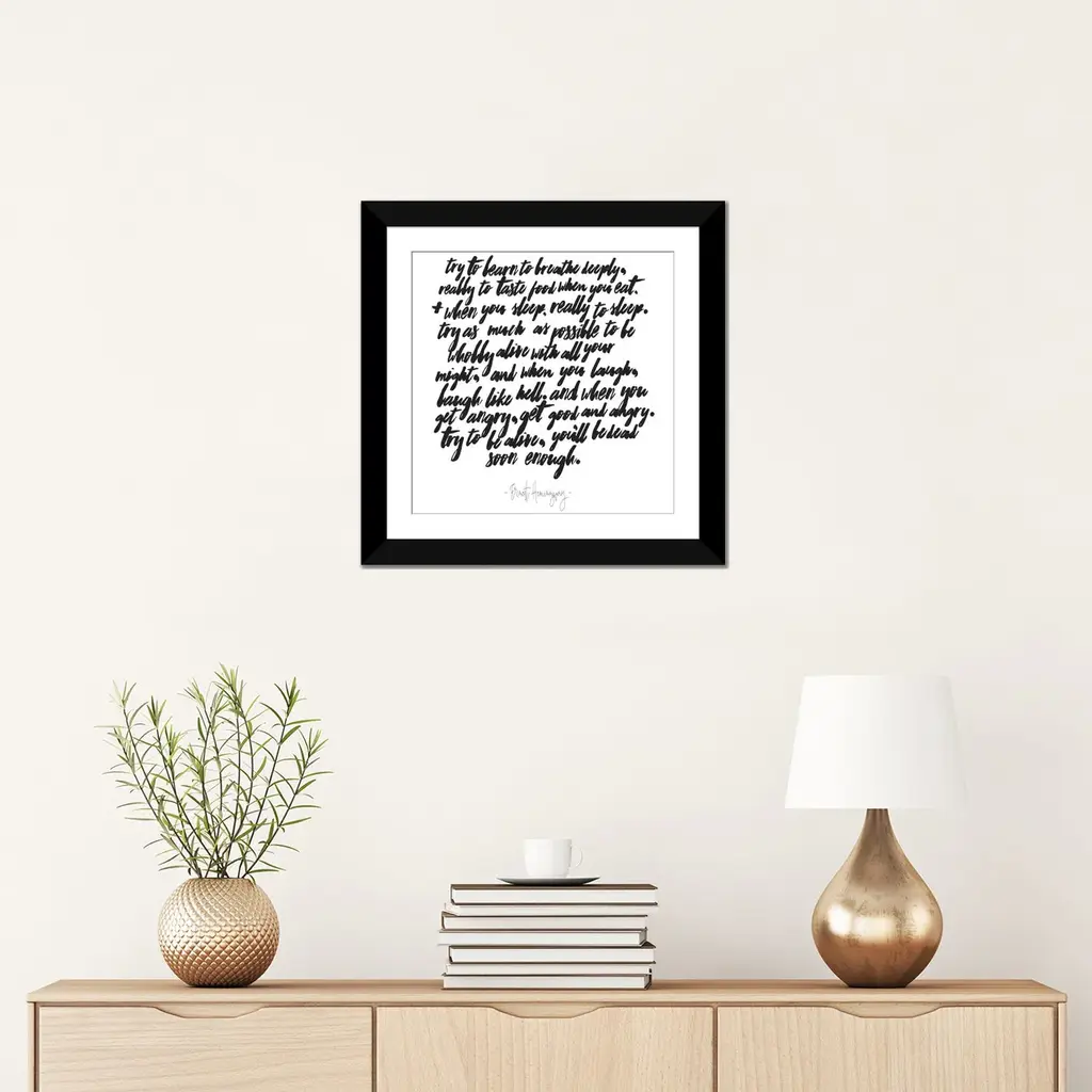 Icanvas "Hemingway Try To Be Alive Quote" By Honeymoon Hotel - Walnut - 24x24x1