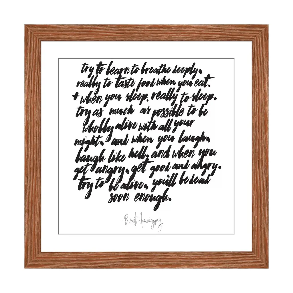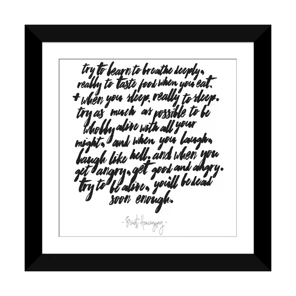 Icanvas "Hemingway Try To Be Alive Quote" By Honeymoon Hotel - White - 16x16x1