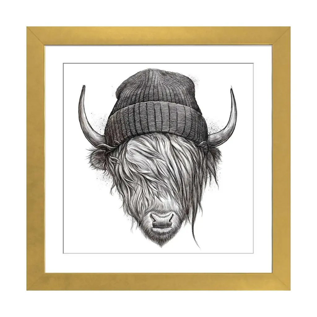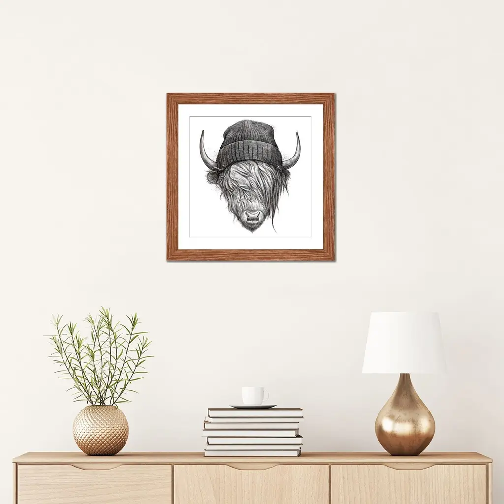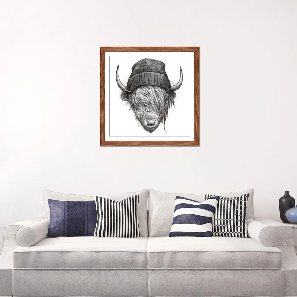 Icanvas "Highland Cattle" By Nikita Korenkov - Walnut - 16x16x1