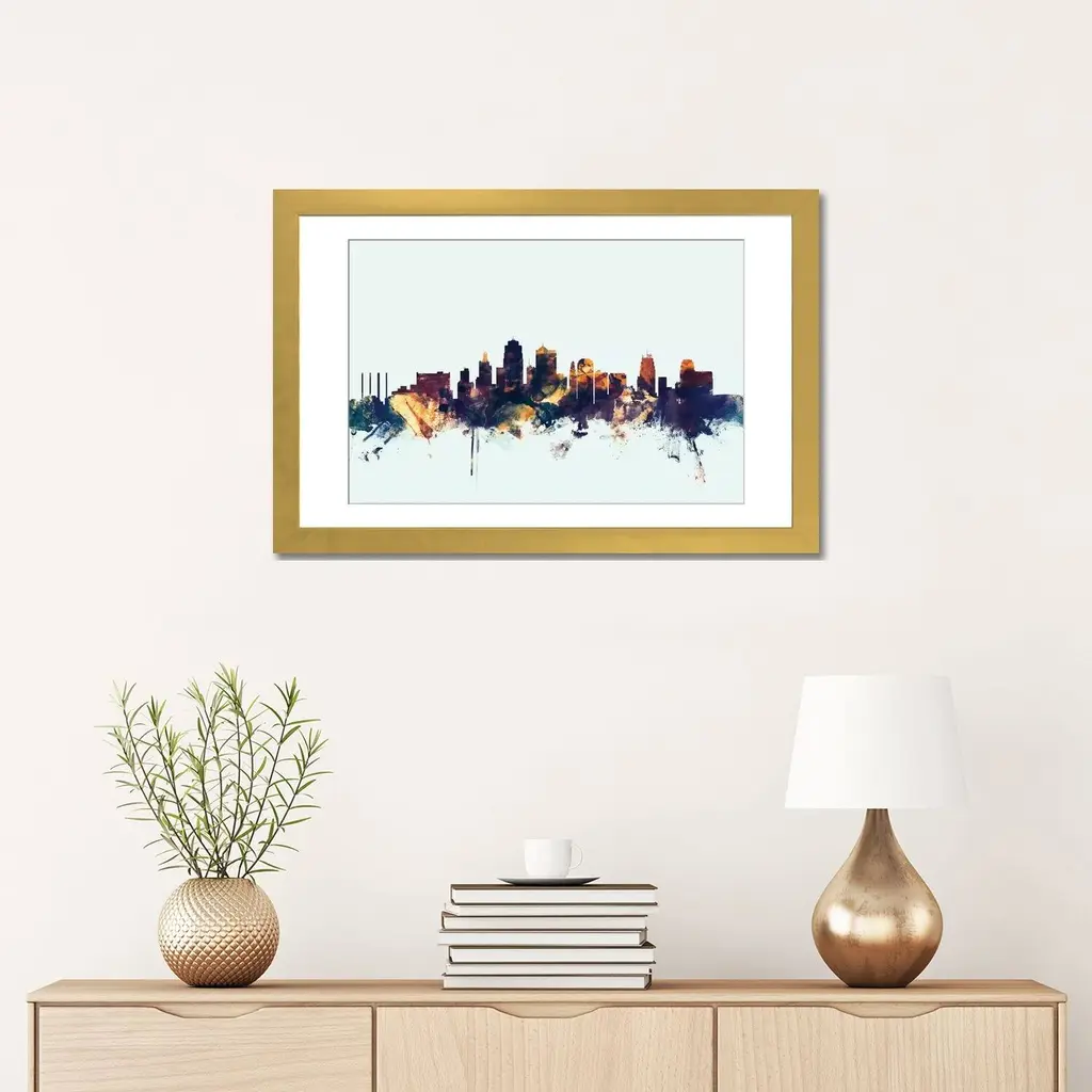 Icanvas "Kansas City, Missouri, Usa On Blue" By Michael Tompsett - Walnut - 24x32x1