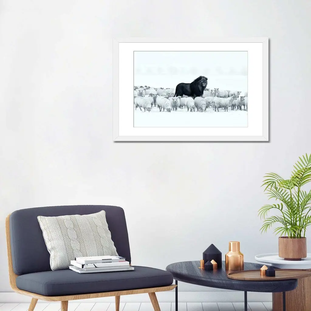 Icanvas "Lion Among Sheep" By Ruvim Noga - White - 16x24x1