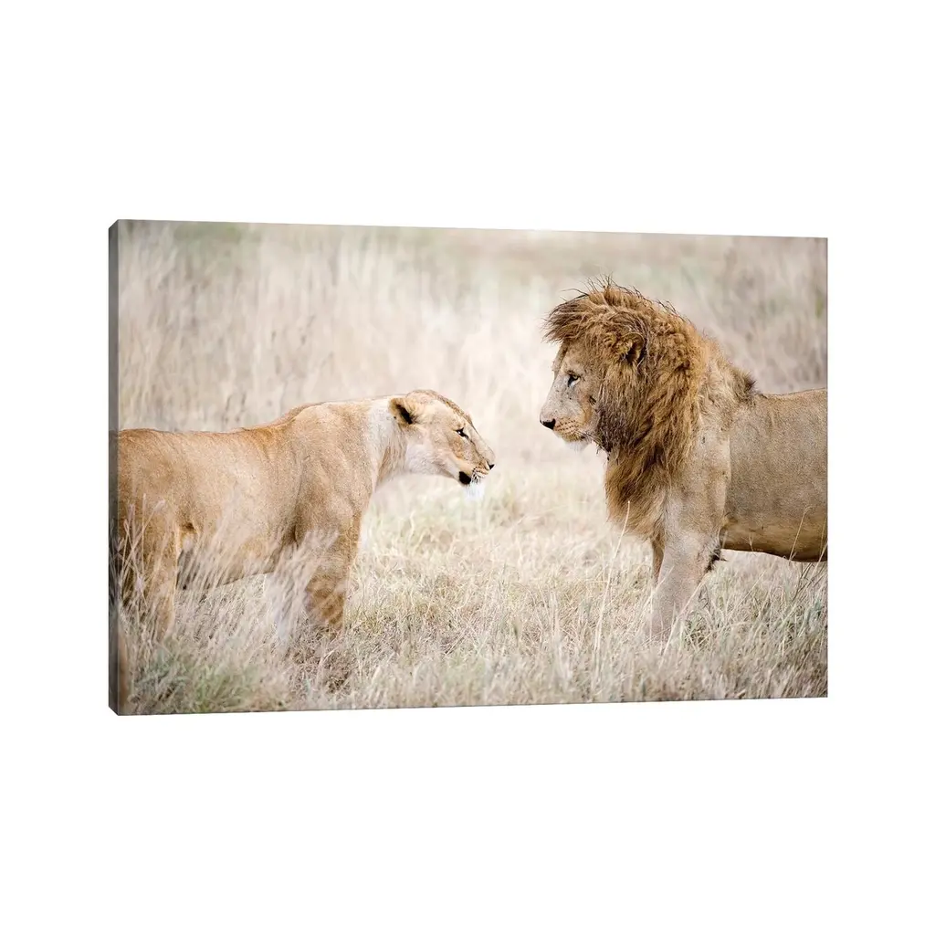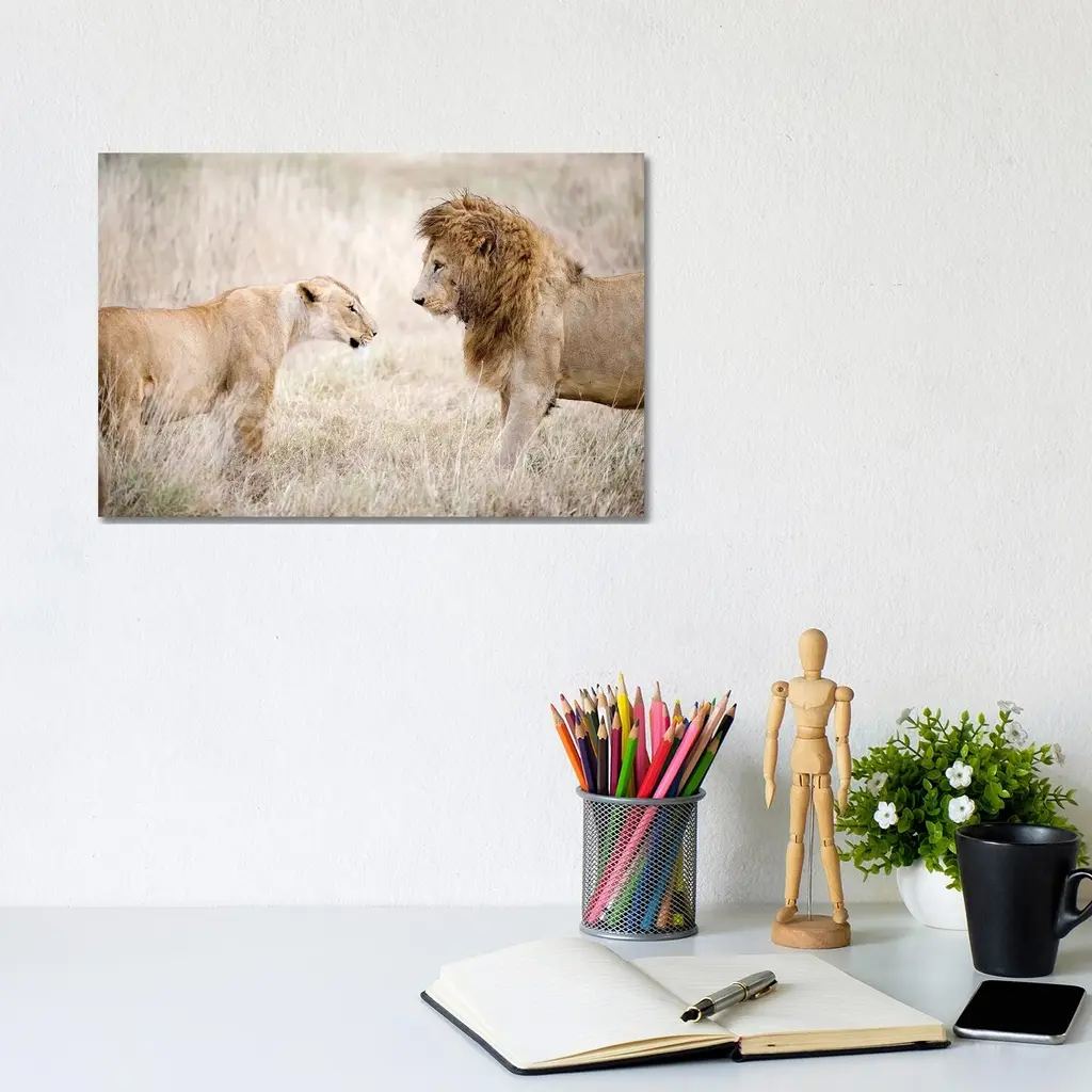 Icanvas "Lion And A Lioness Standing Face To Face In A Forest, Ngorongoro Crater, Tanzania" By Panoramic Images Canvas Print - 12x18x1.5