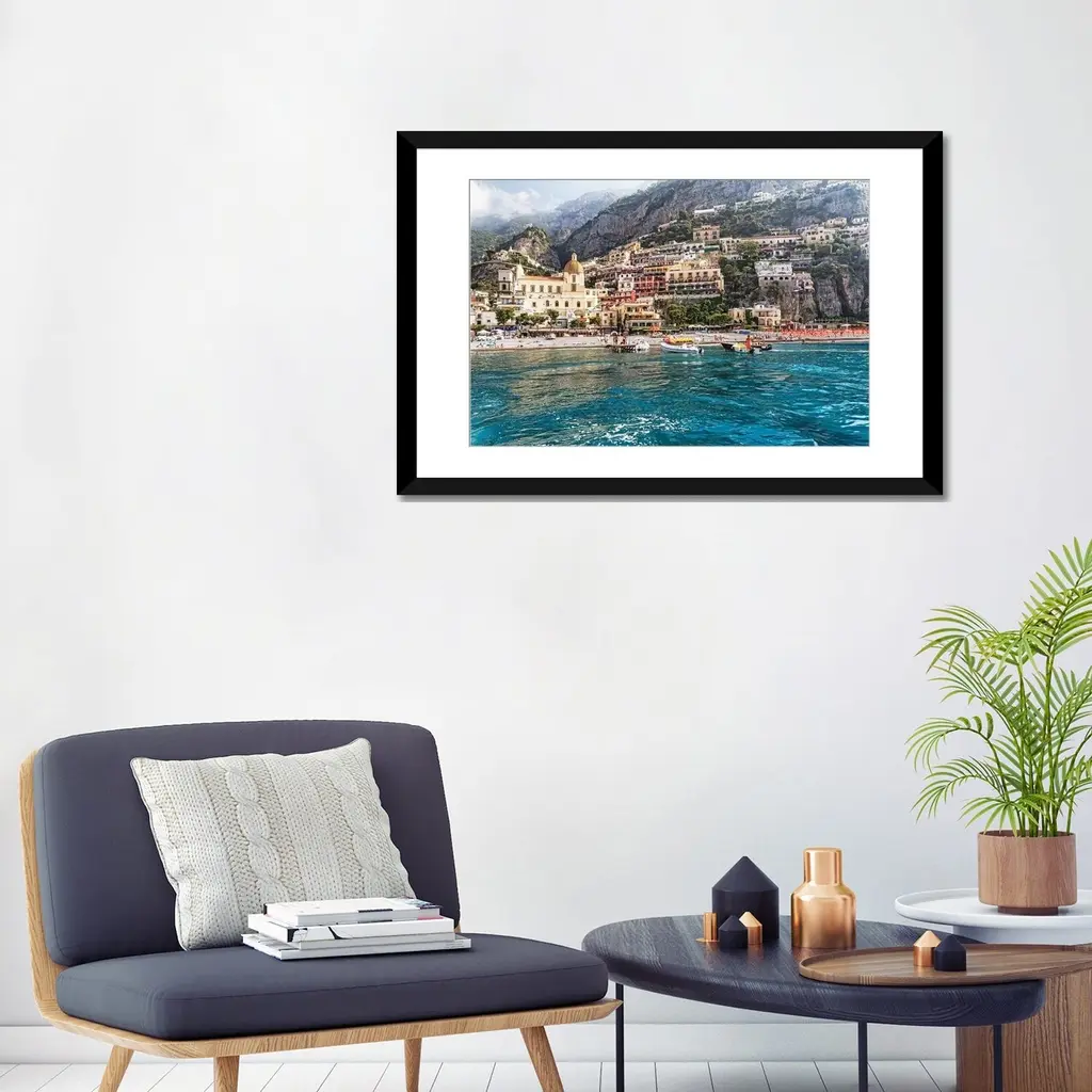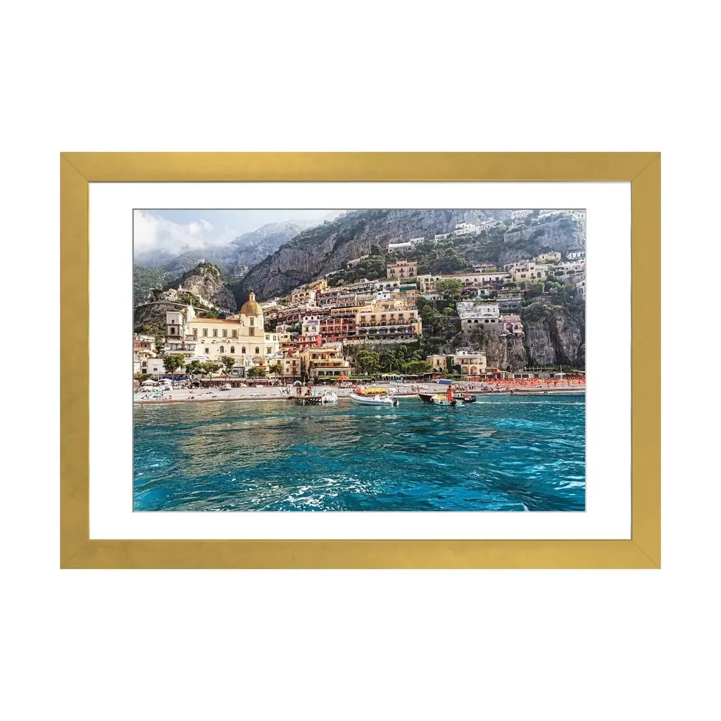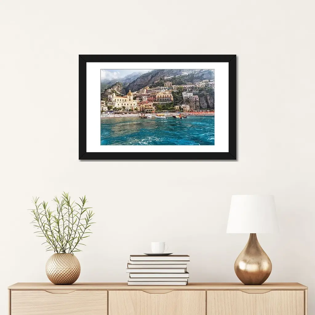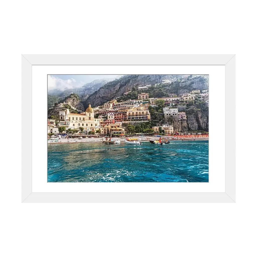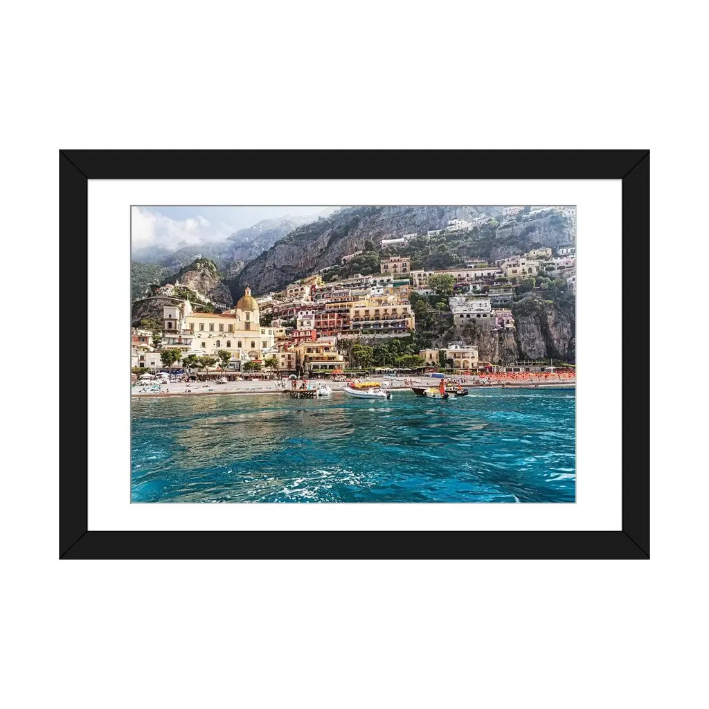 Icanvas "Low Angle View Of Positano From The Sea, Amalfi Coast, Campania, Italy" By George Oze Pfa - Black - 16x24x1
