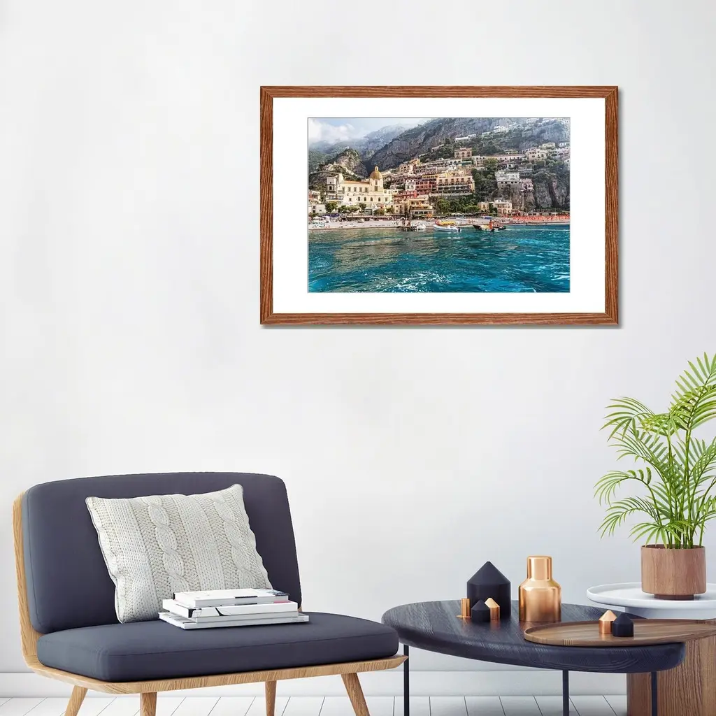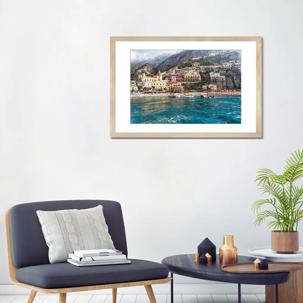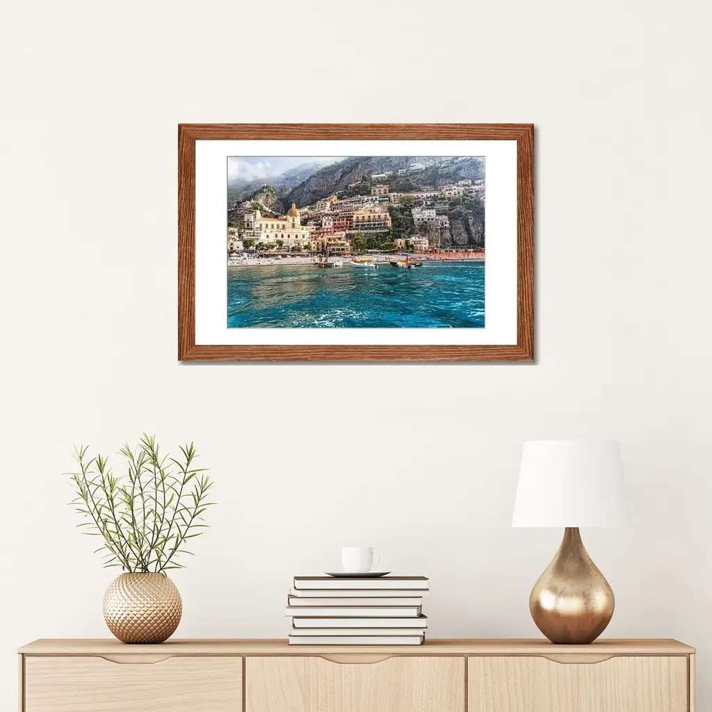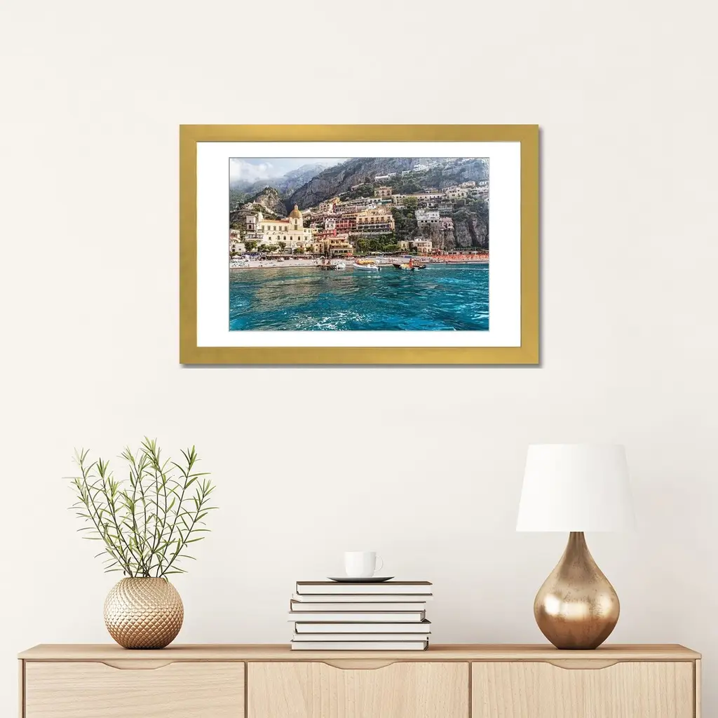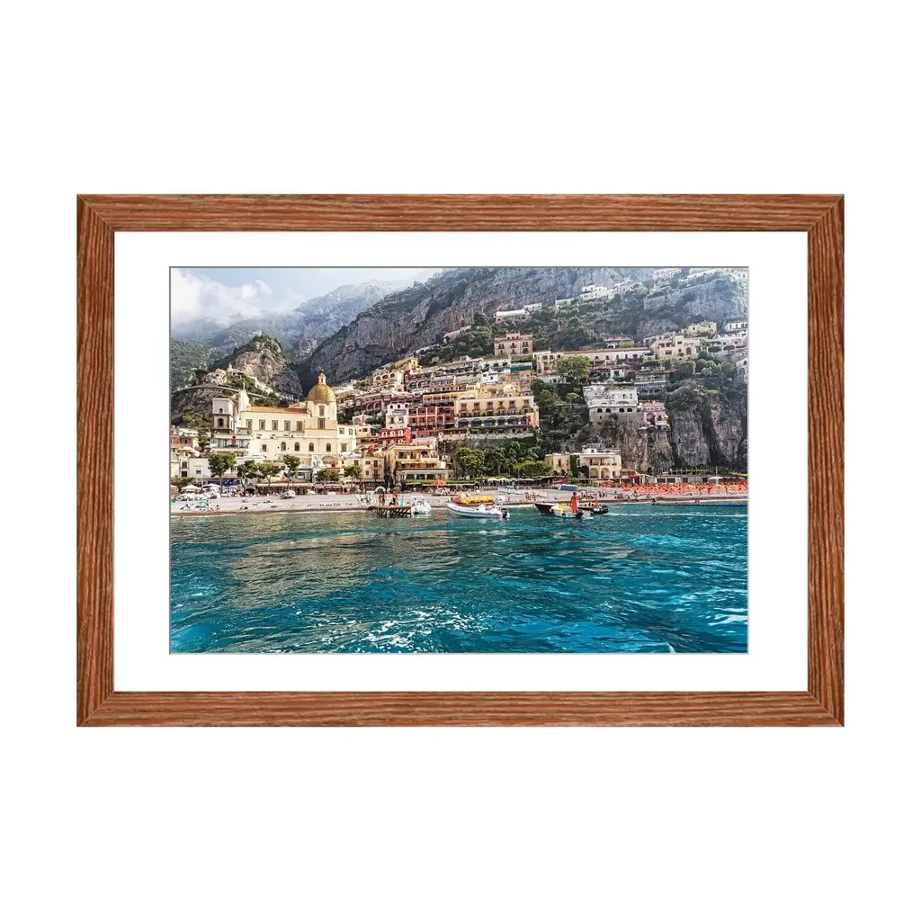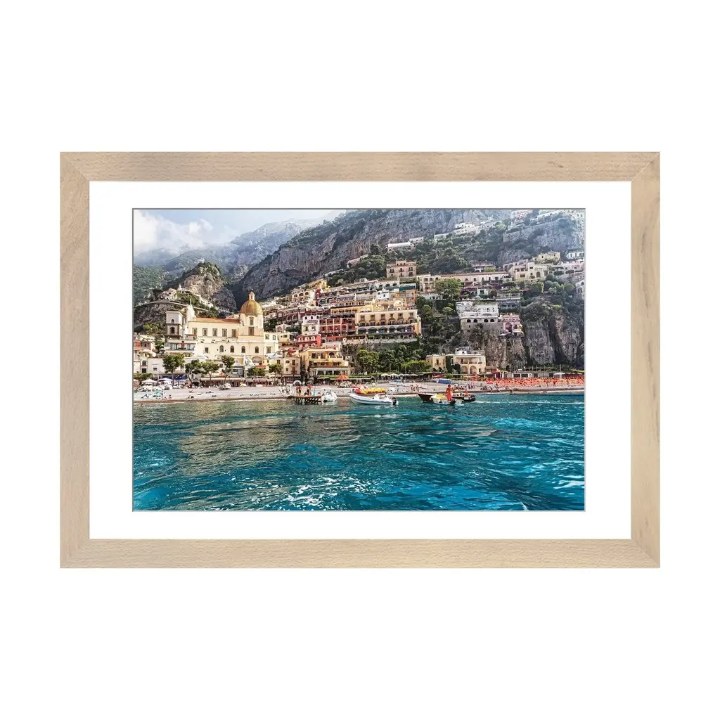 Icanvas "Low Angle View Of Positano From The Sea, Amalfi Coast, Campania, Italy" By George Oze Pfa - Black - 16x24x1