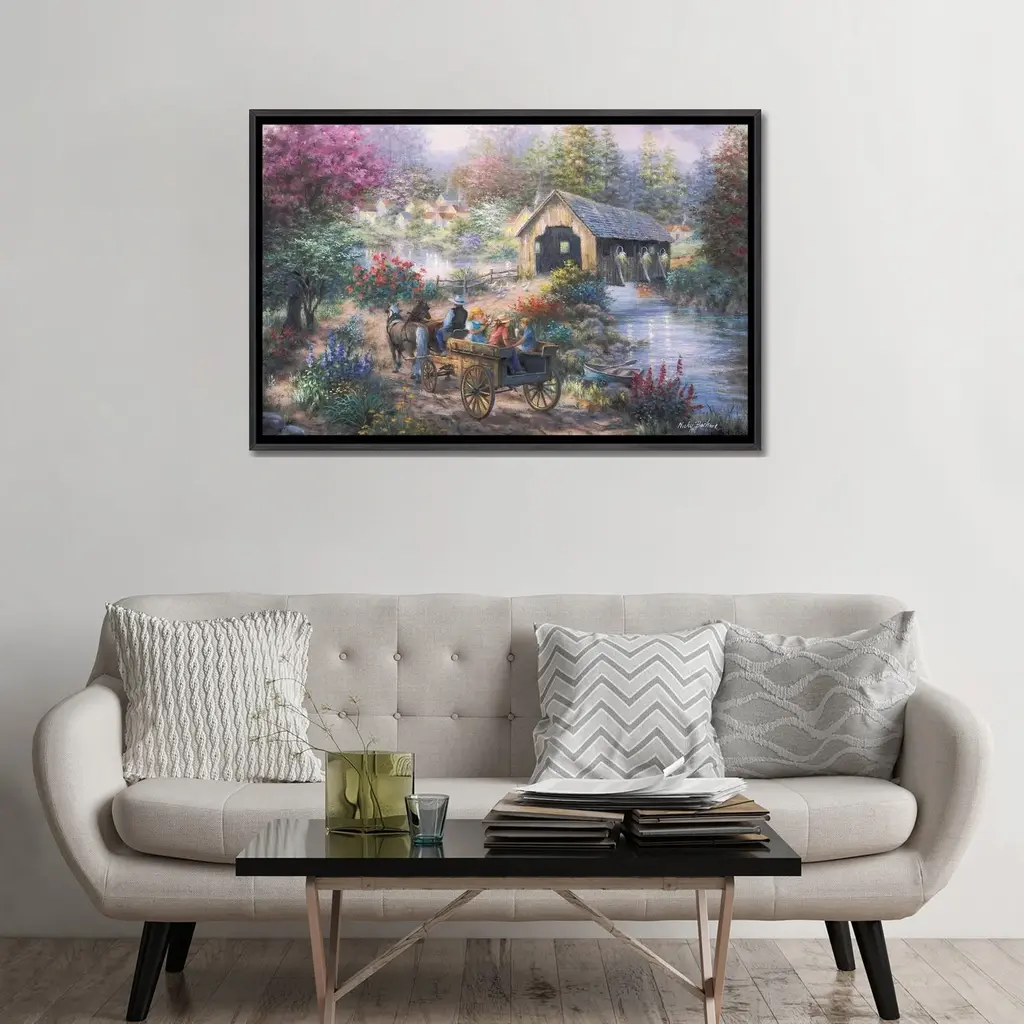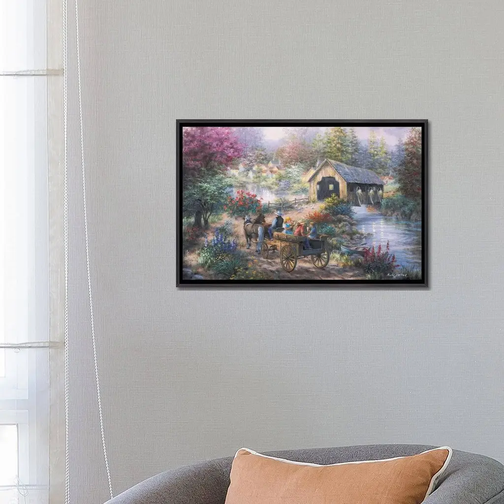 Icanvas "Merriment At Covered Bridge" By Nicky Boehme Framed - Charcoal - 26x40
