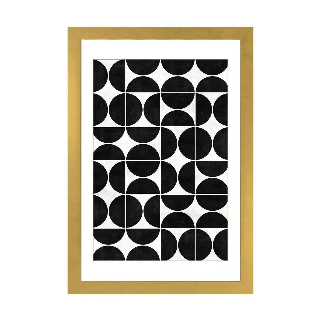 Icanvas "Mid-Century Modern Pattern No.3 - Black And White Concrete" By Zoltan Ratko - Gold - 24x16x1