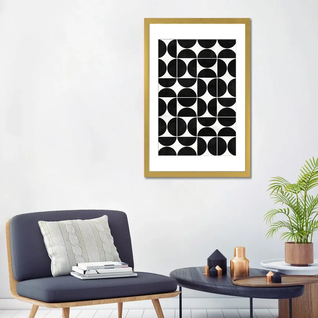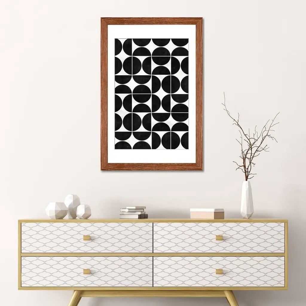 Icanvas "Mid-Century Modern Pattern No.3 - Black And White Concrete" By Zoltan Ratko - Walnut - 24x16x1