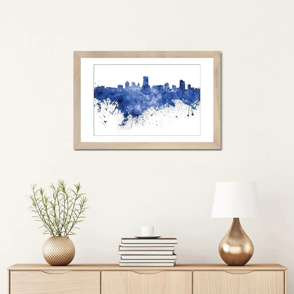 Icanvas "Milwaukee Skyline In Blue" By Paul Rommer - Black - 24x32x1