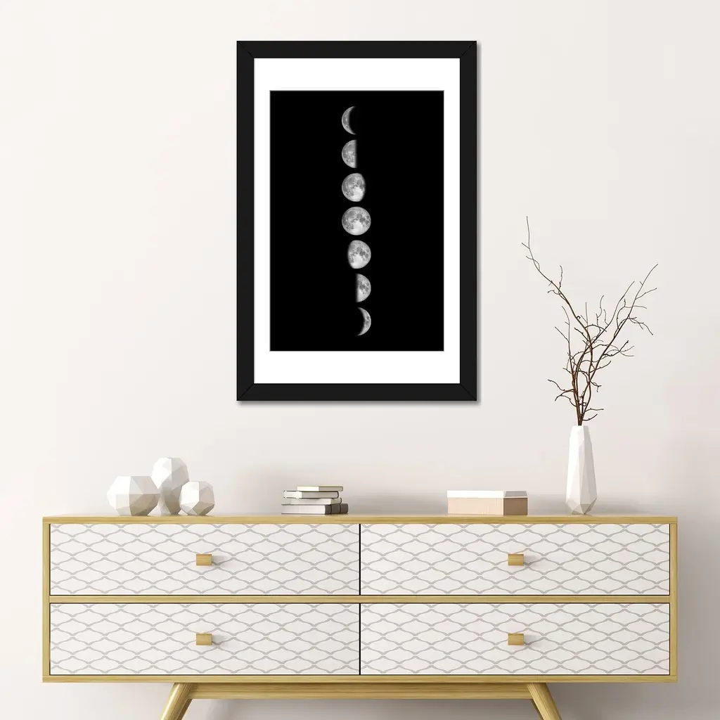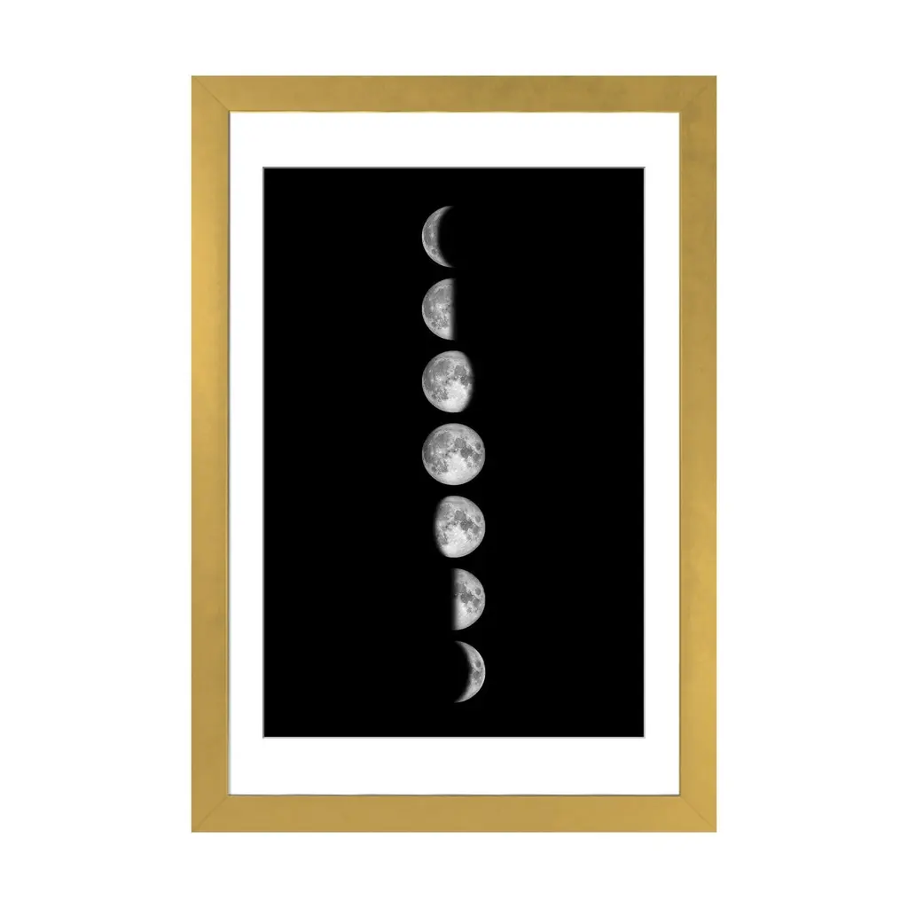 Icanvas "Minimalist Moon Phases - Black" By Getyournerdon - Gold - 32x24x1
