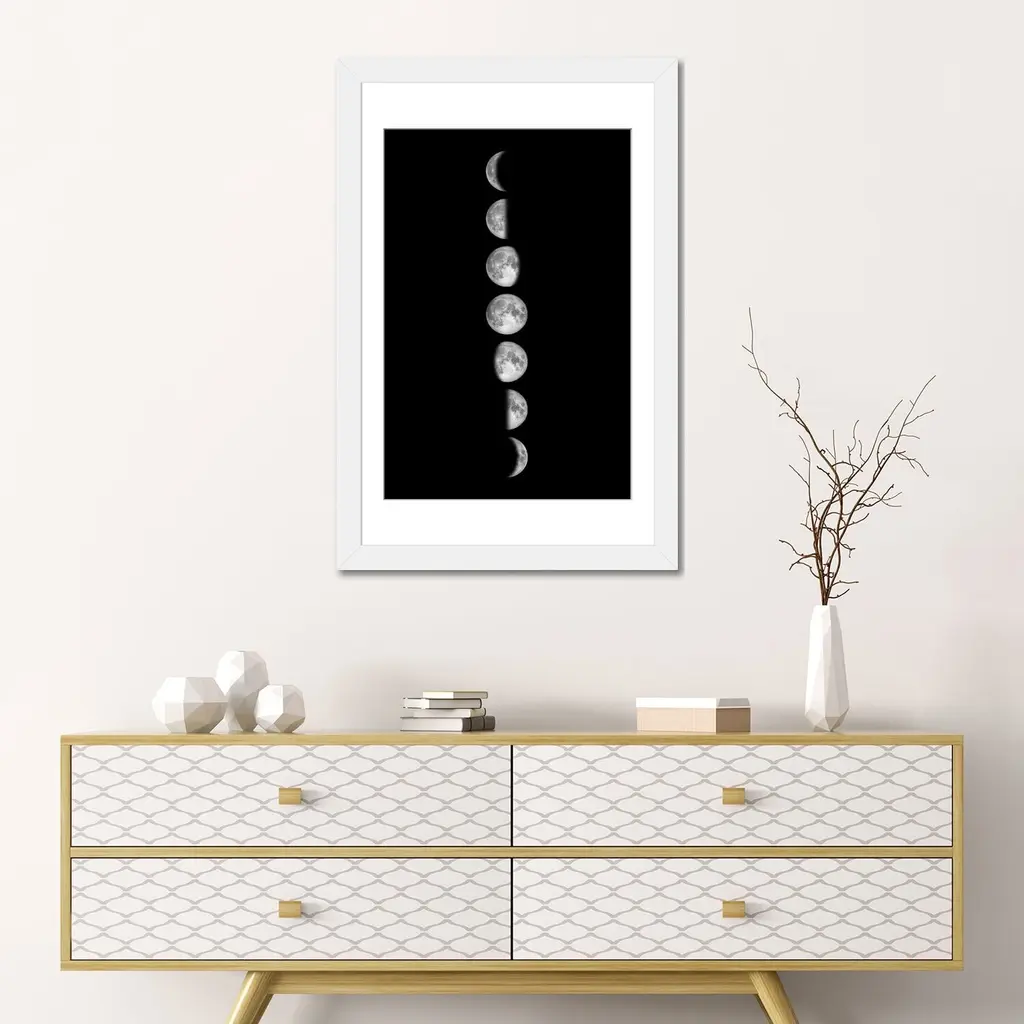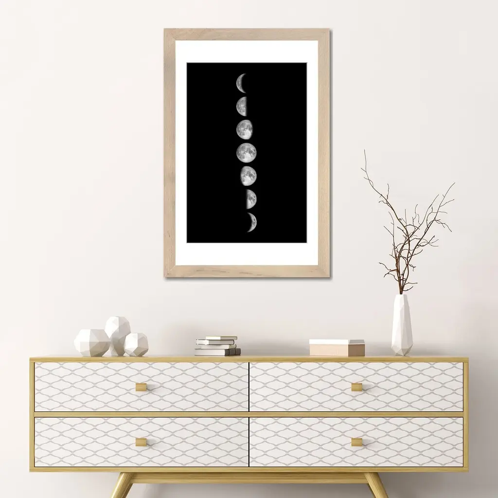 Icanvas "Minimalist Moon Phases - Black" By Getyournerdon - Natural - 24x16x1