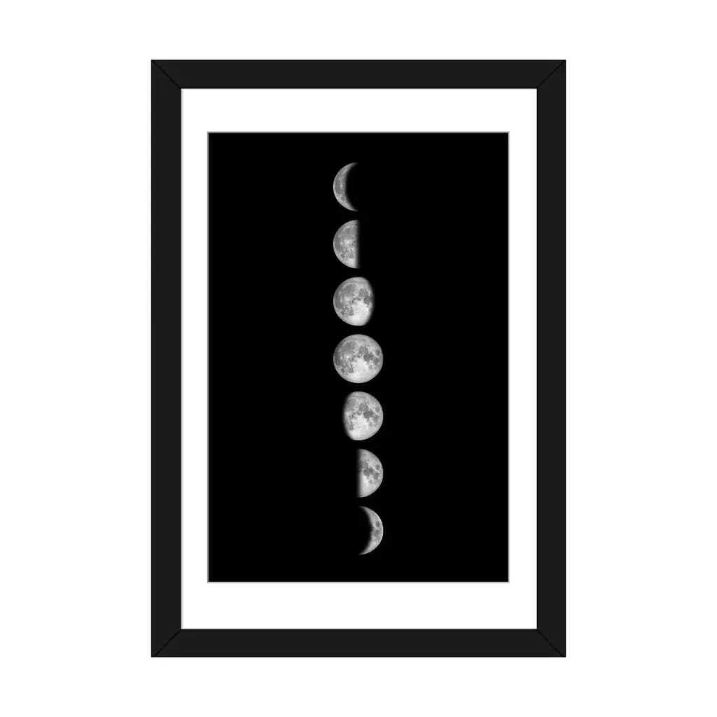 Icanvas "Minimalist Moon Phases - Black" By Getyournerdon - White - 32x24x1