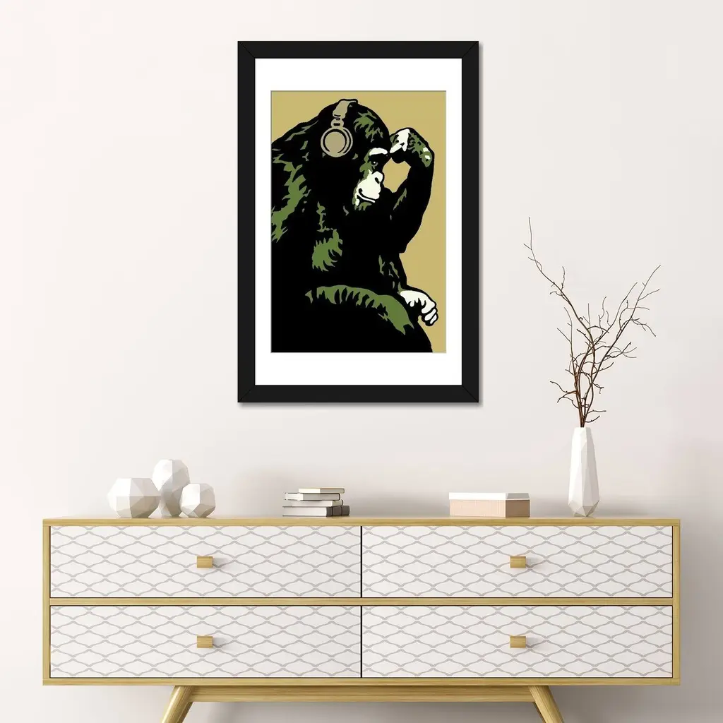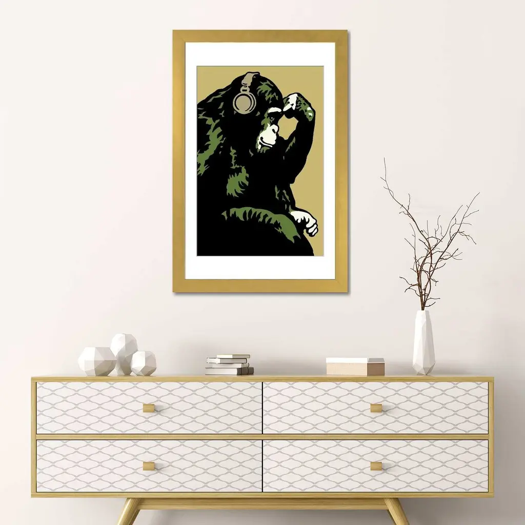 Icanvas "Monkey Thinker Army" By Steez - White - 32x24x1
