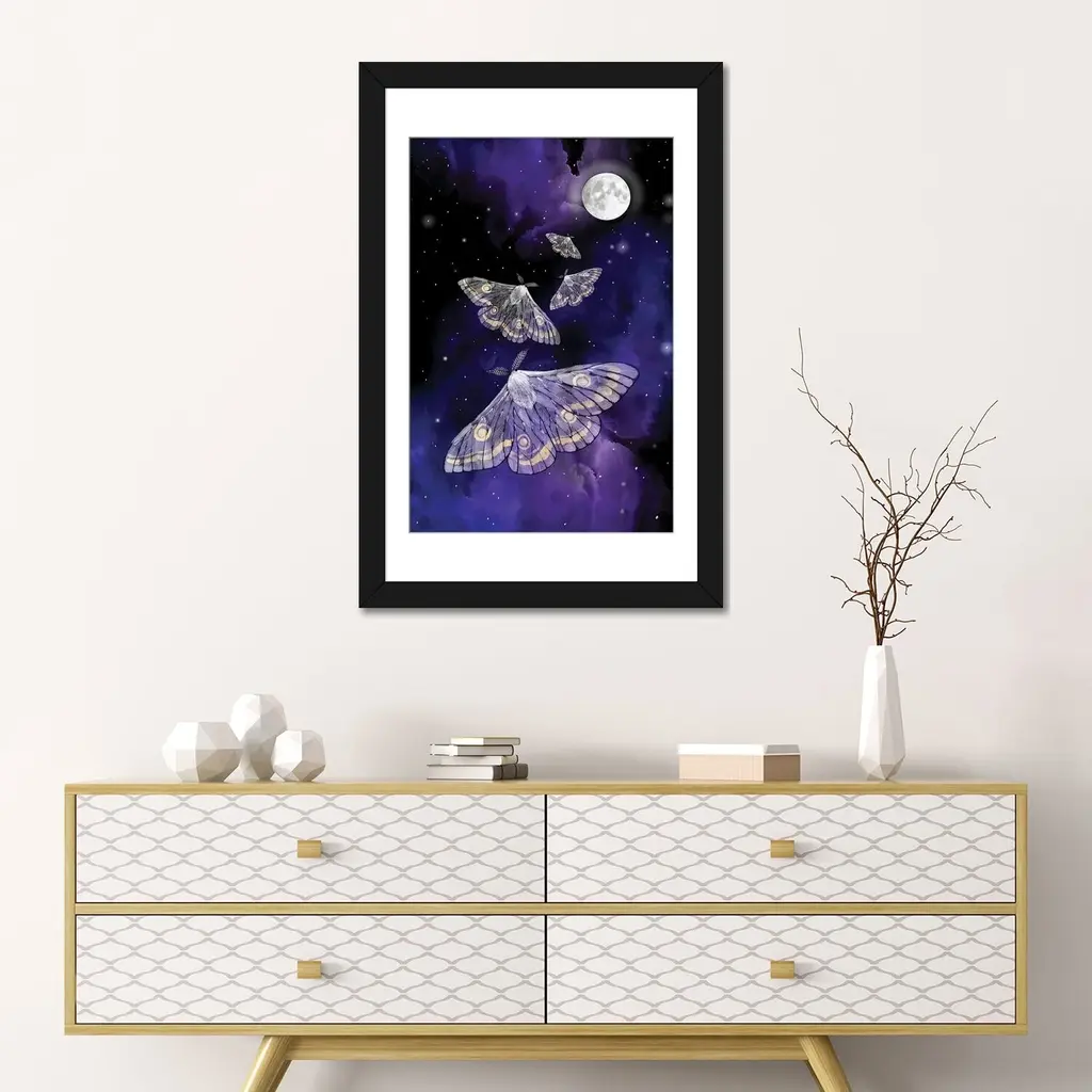 Icanvas "Moon Moths" By Thomas Little - Black - 24x16x1