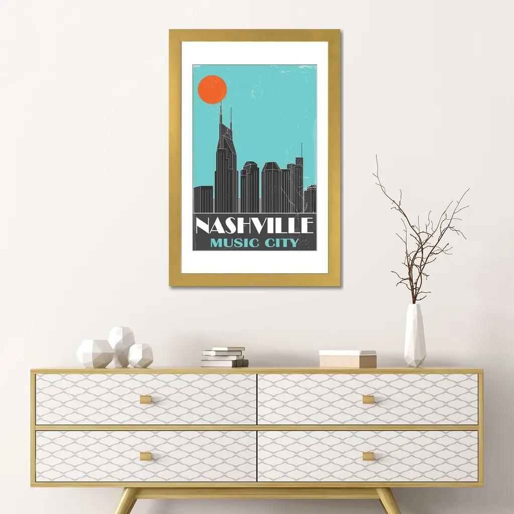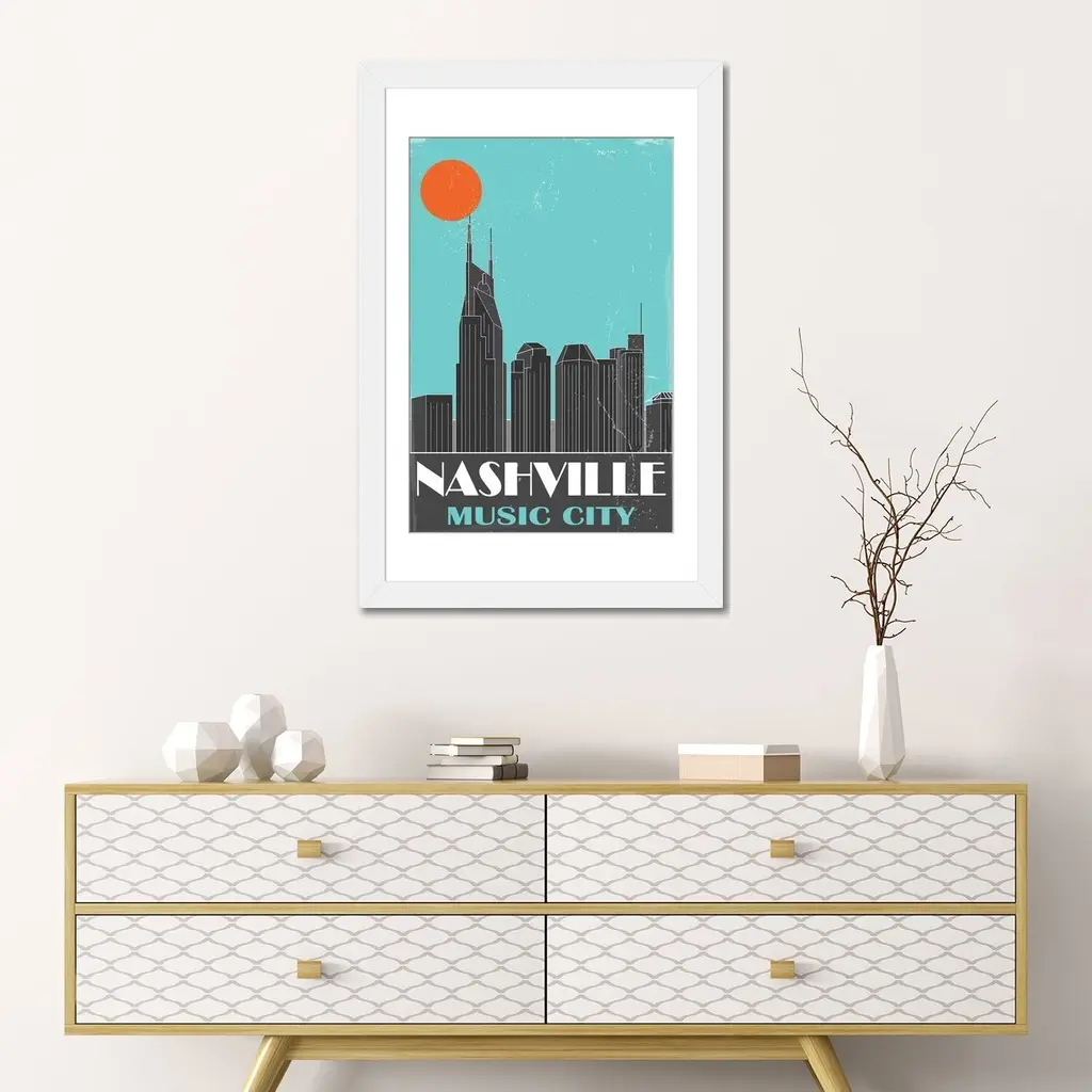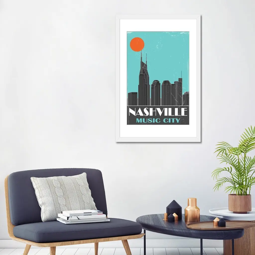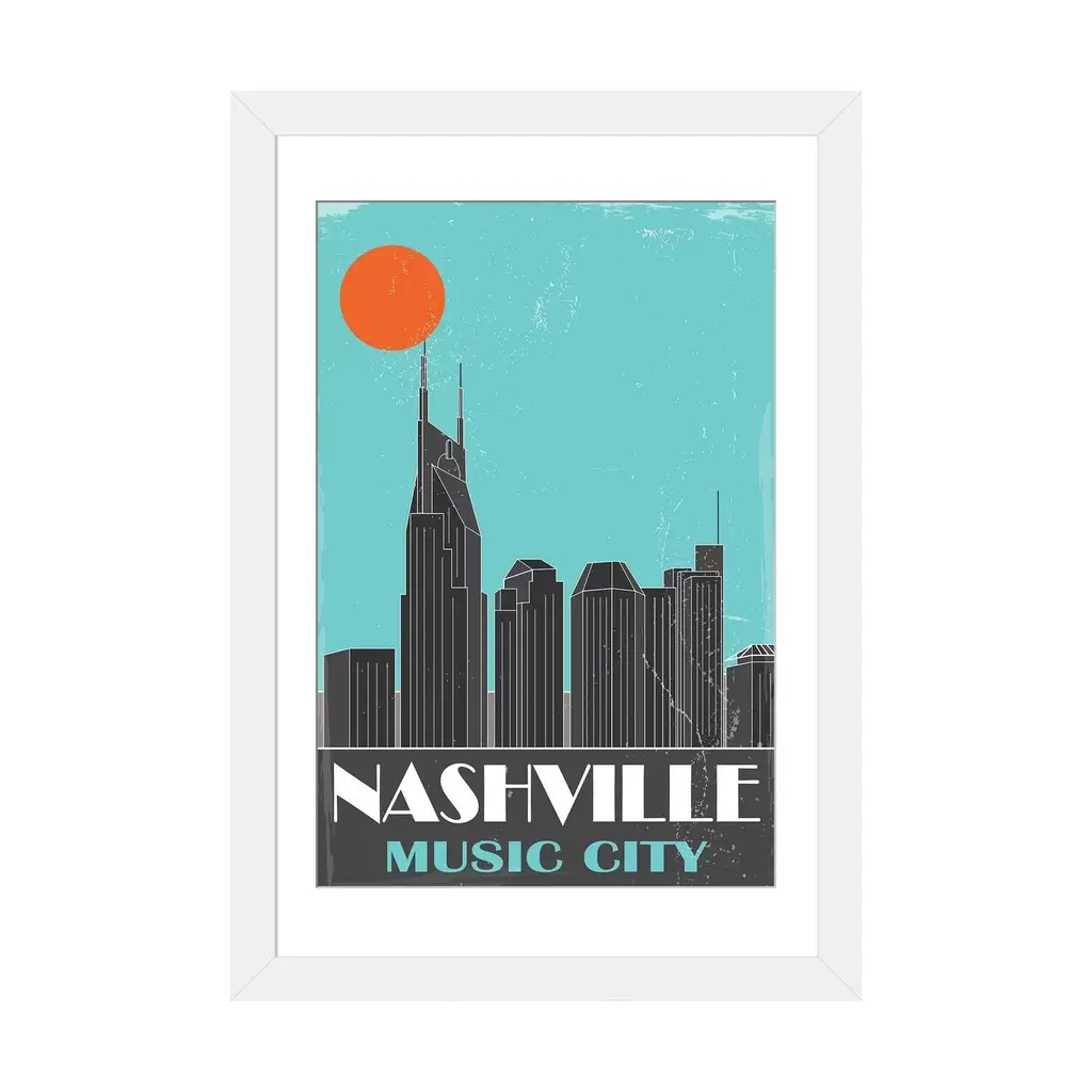 Icanvas "Nashville, Sky Blue" By Fly Graphics - White - 24x16x1