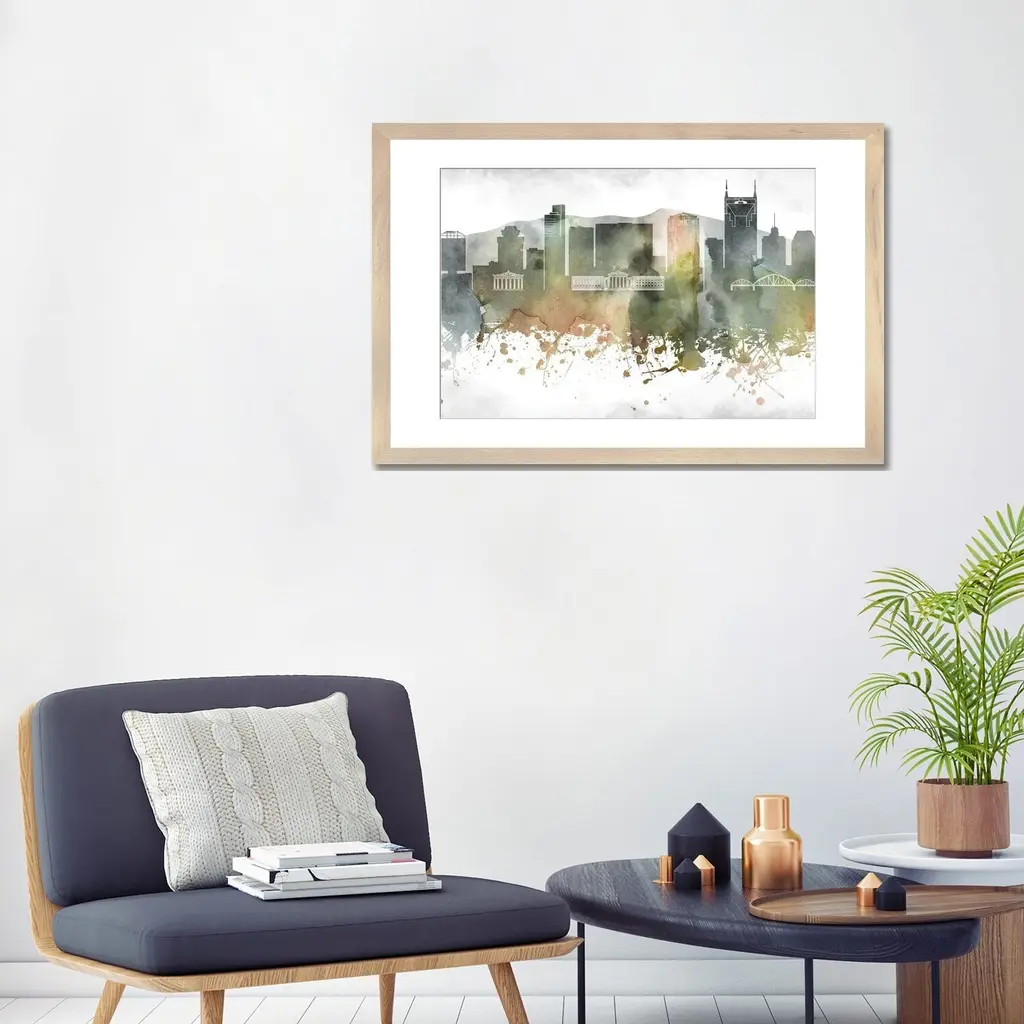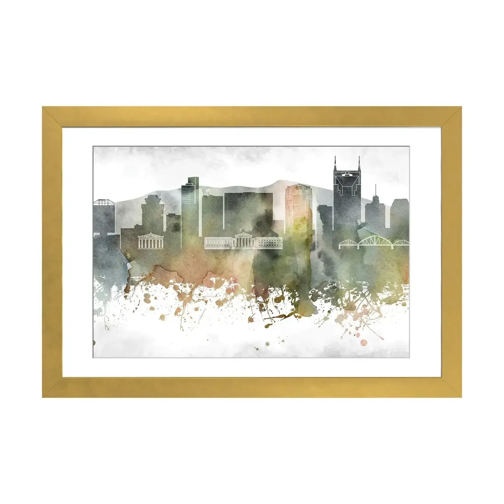 Icanvas "Nashville Skyline" By Walldecoraddict - Walnut - 16x24x1