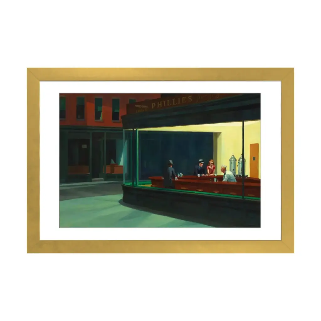 Icanvas "Nighthawks, 1942" By Edward Hopper - Black - 16x24x1