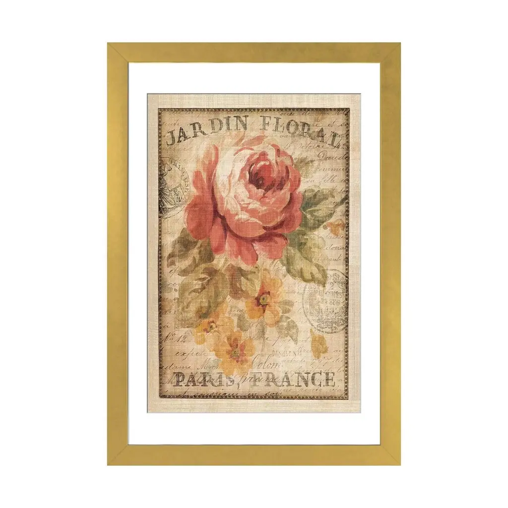 Icanvas "Parisian Flowers Ii" By Danhui Nai - Gold - 24x16x1