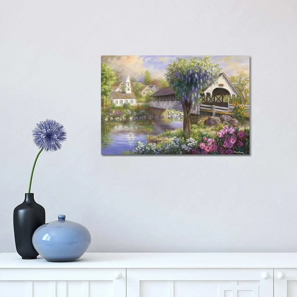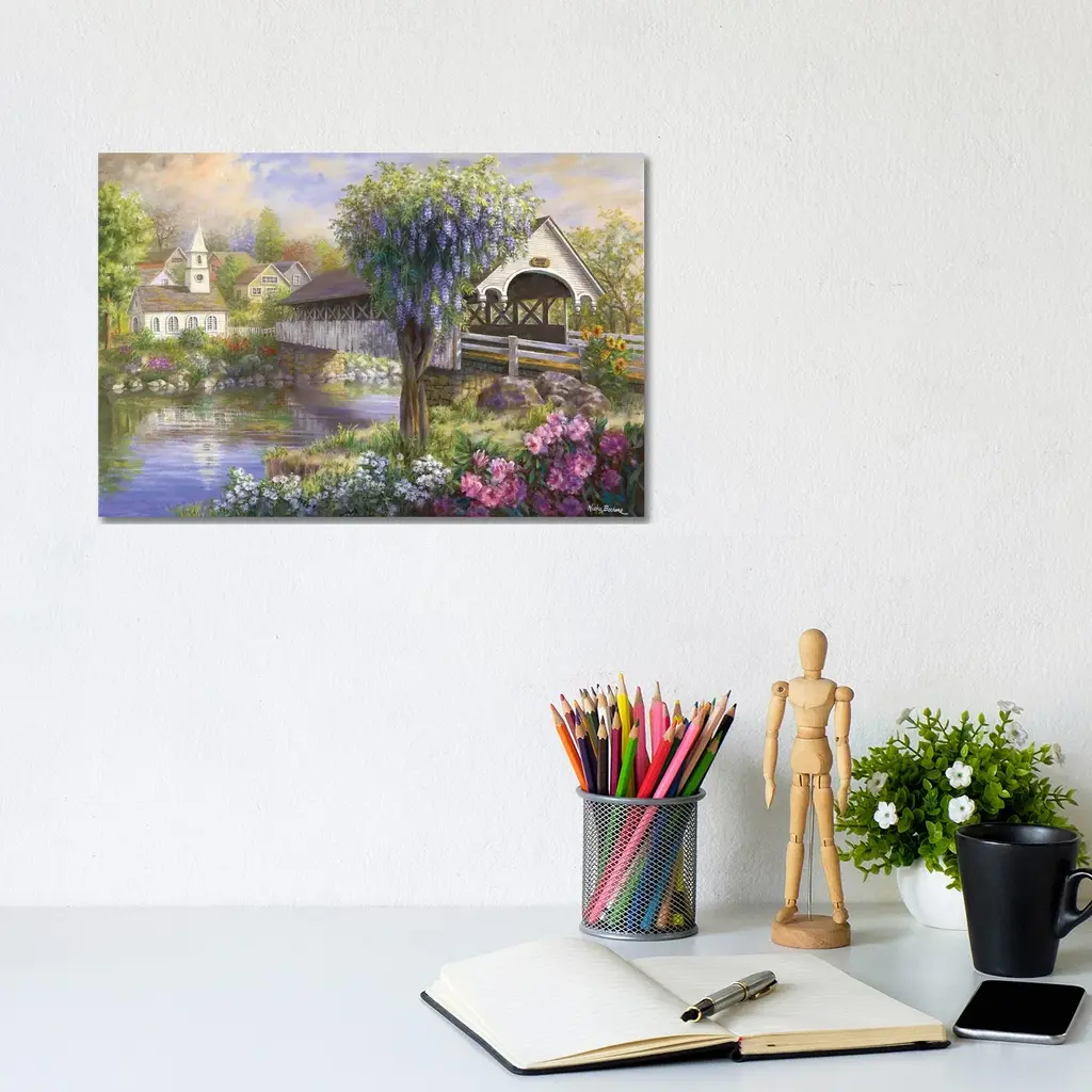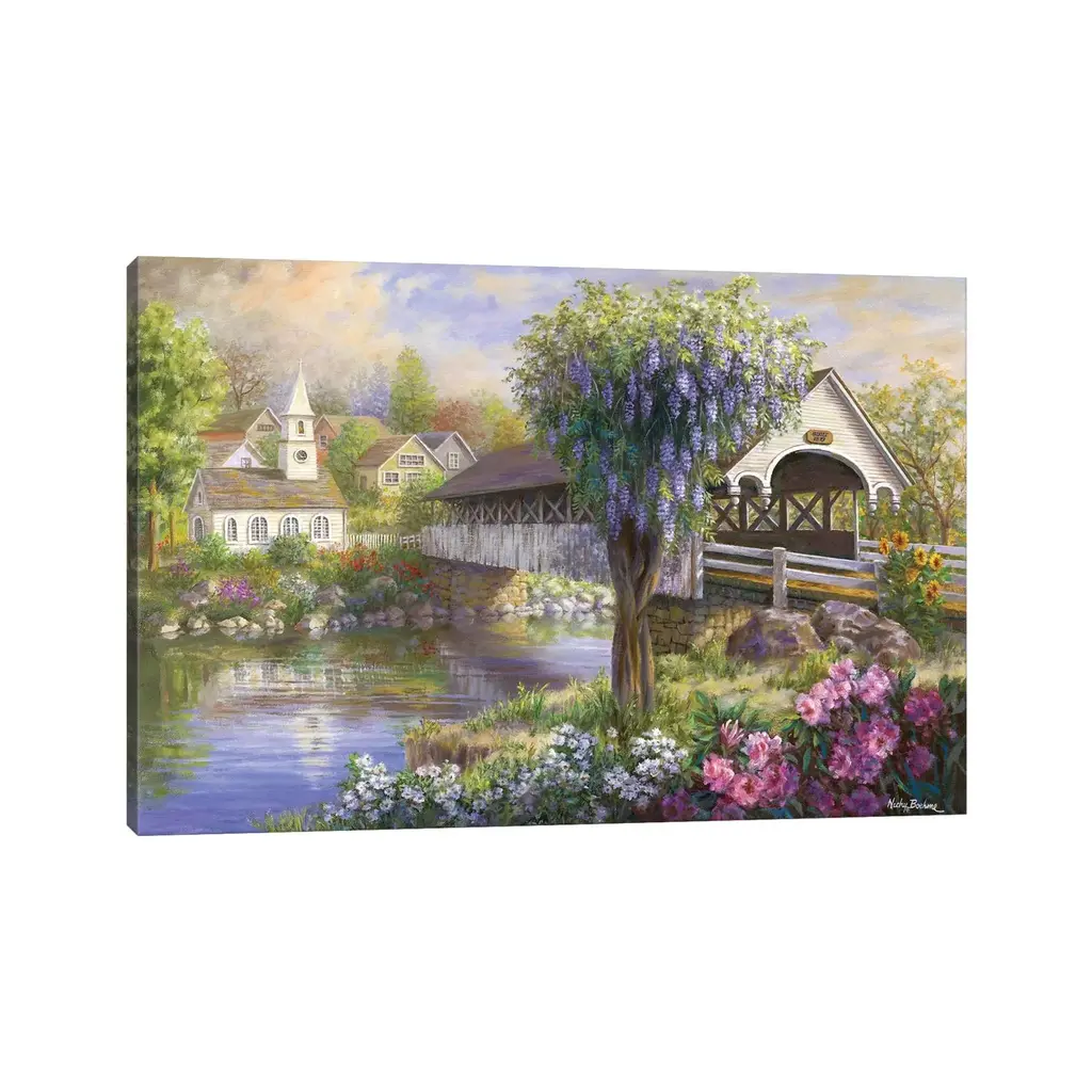 Icanvas "Picturesque Covered Bridge" By Nicky Boehme Canvas Print - 8X12x0.75