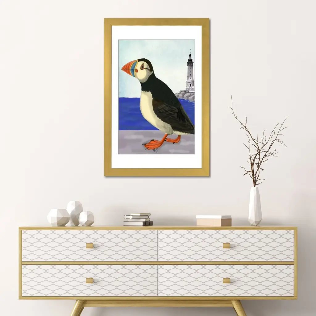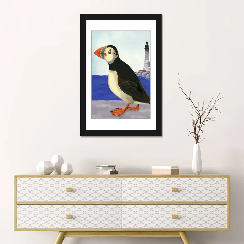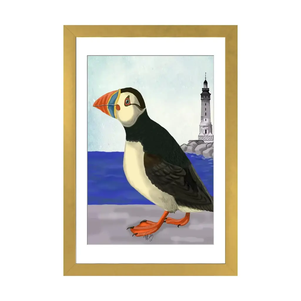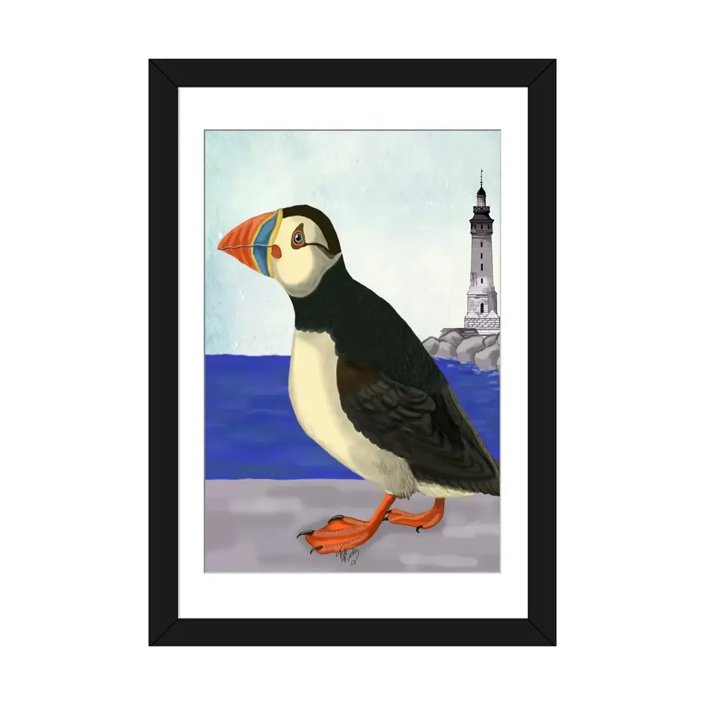 Icanvas "Puffin On The Quay" By Fab Funky - Black - 24x16x1