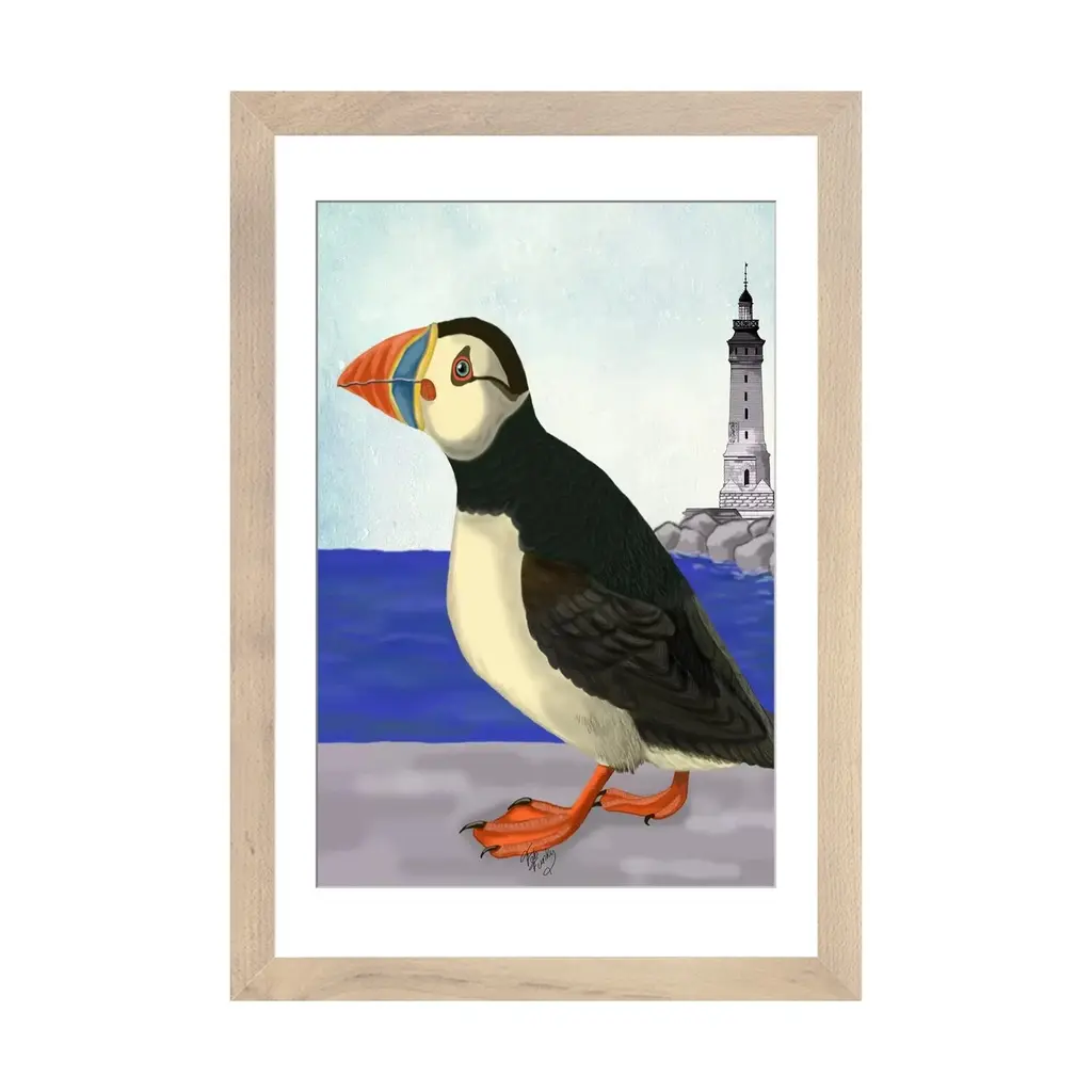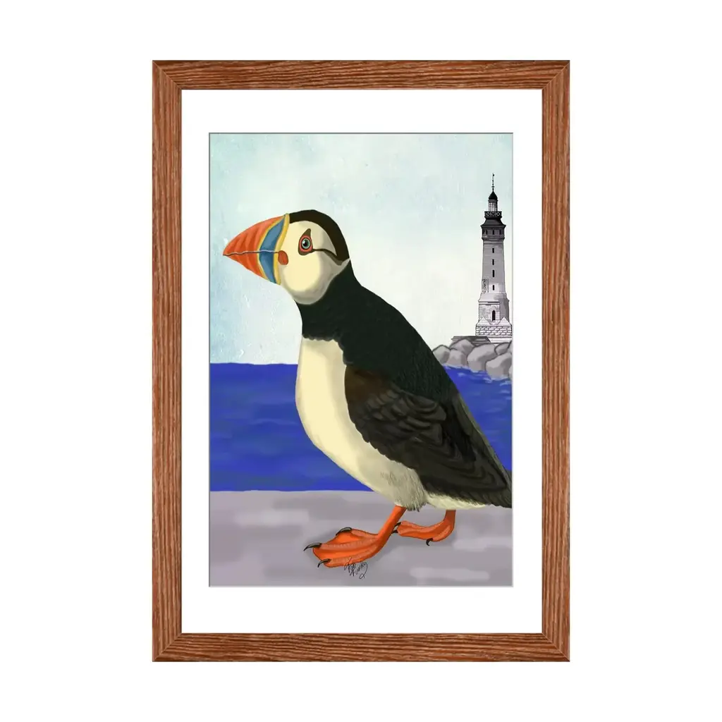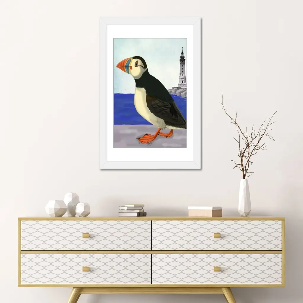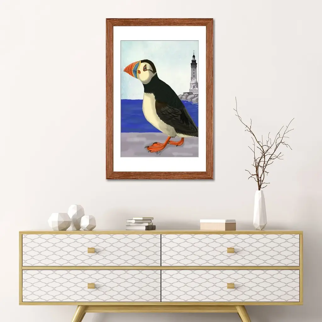 Icanvas "Puffin On The Quay" By Fab Funky - Black - 24x16x1