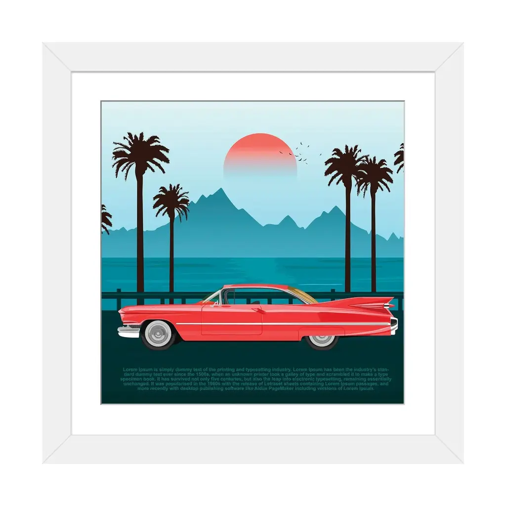 Icanvas "Red Retro Car On Road Near Blue Sea Or Ocean With Palm Trees And Mountains" By Flint01 - Walnut - 16x16x1
