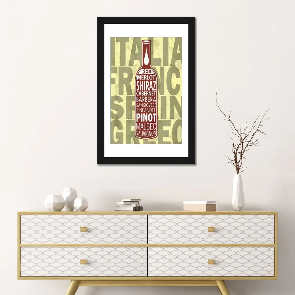 Icanvas "Red Wines" By Fly Graphics - Gold - 32x24x1