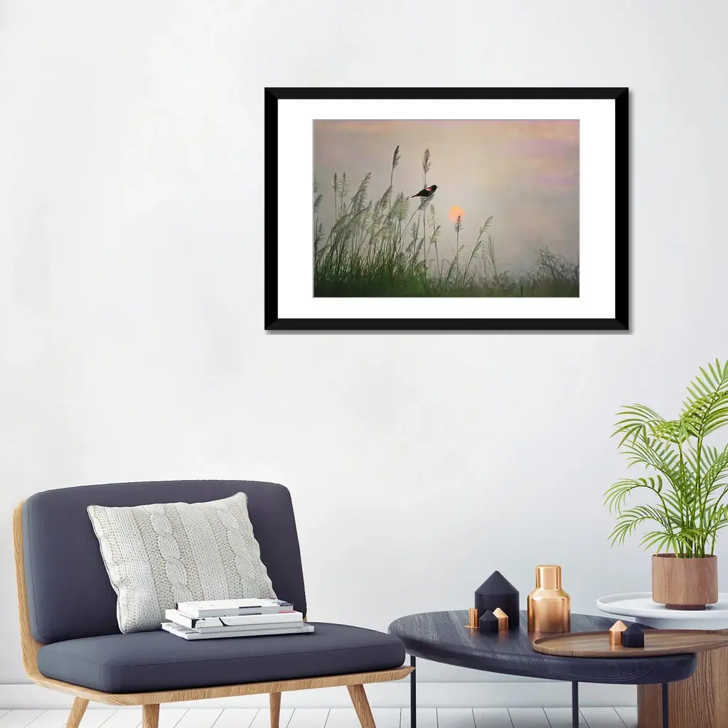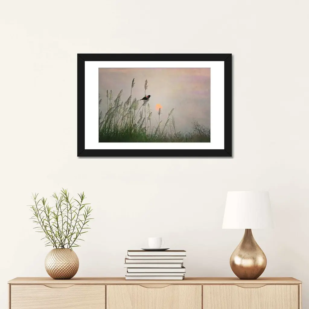 Icanvas "Red Winged Blackbird In Marshes At Dusk" By Laura D Young - Walnut - 24x32x1
