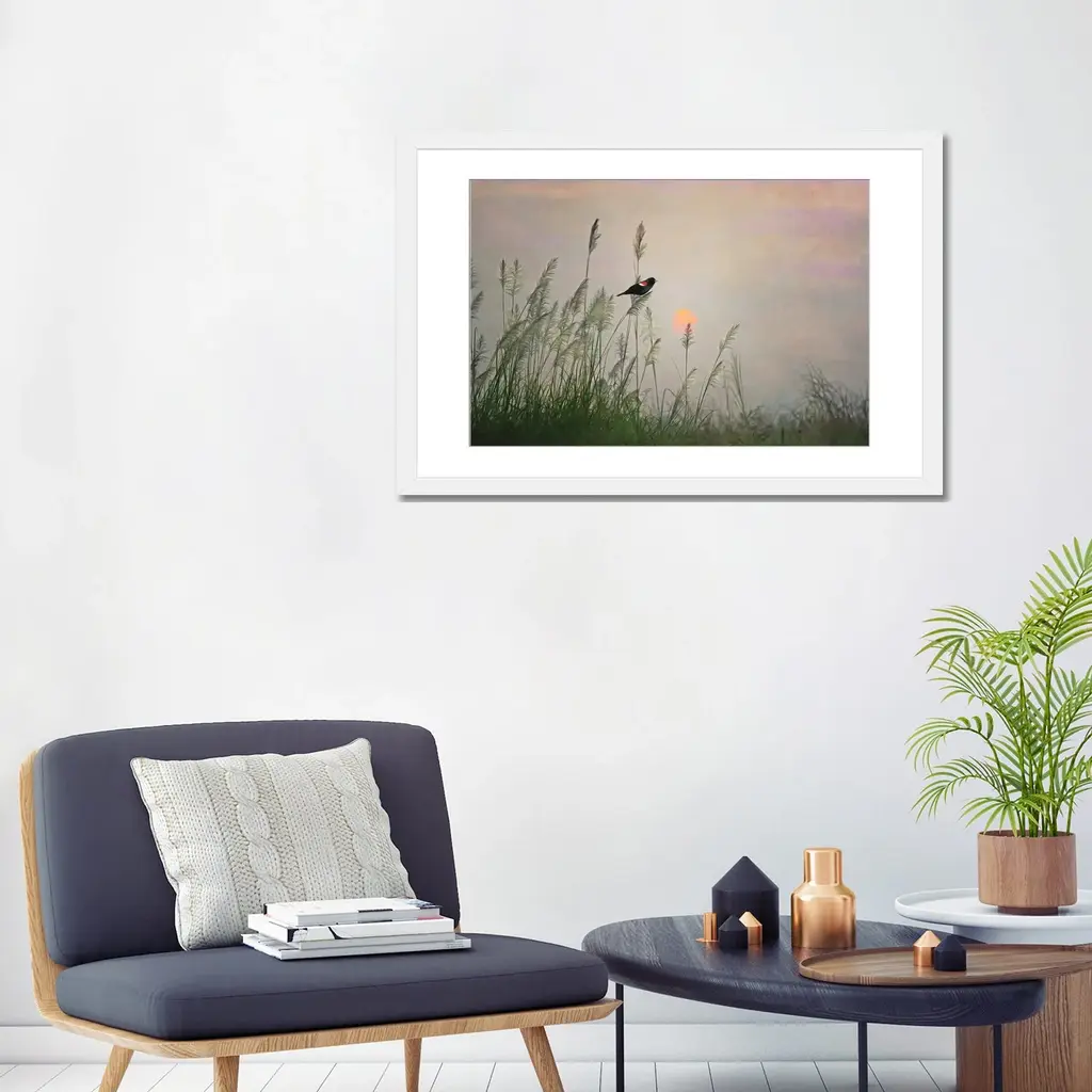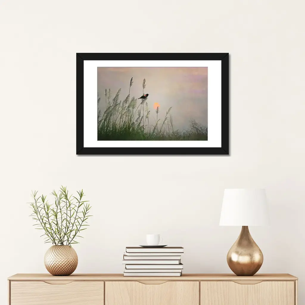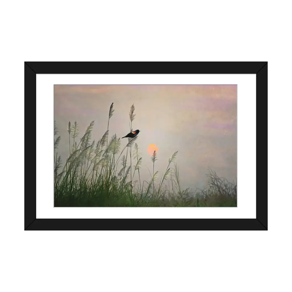 Icanvas "Red Winged Blackbird In Marshes At Dusk" By Laura D Young - White - 24x32x1
