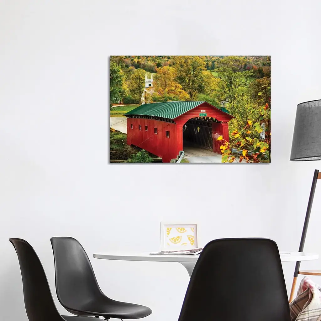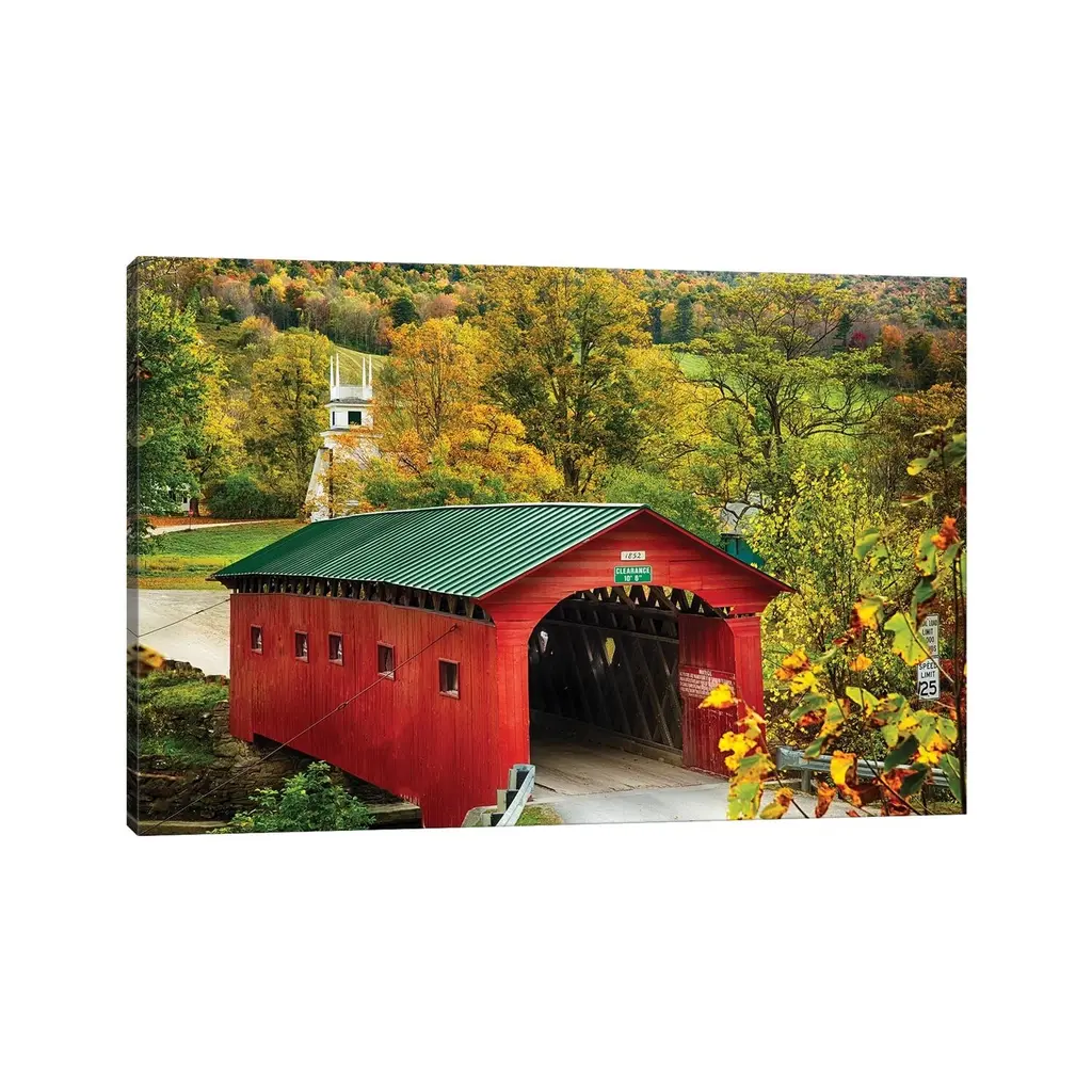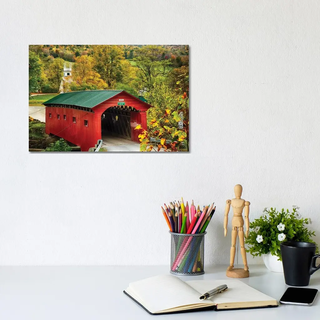 Icanvas "Scenic Covered Bridge Of West Arlington, Vermont" By George Oze Canvas Print - 12x18x1.5