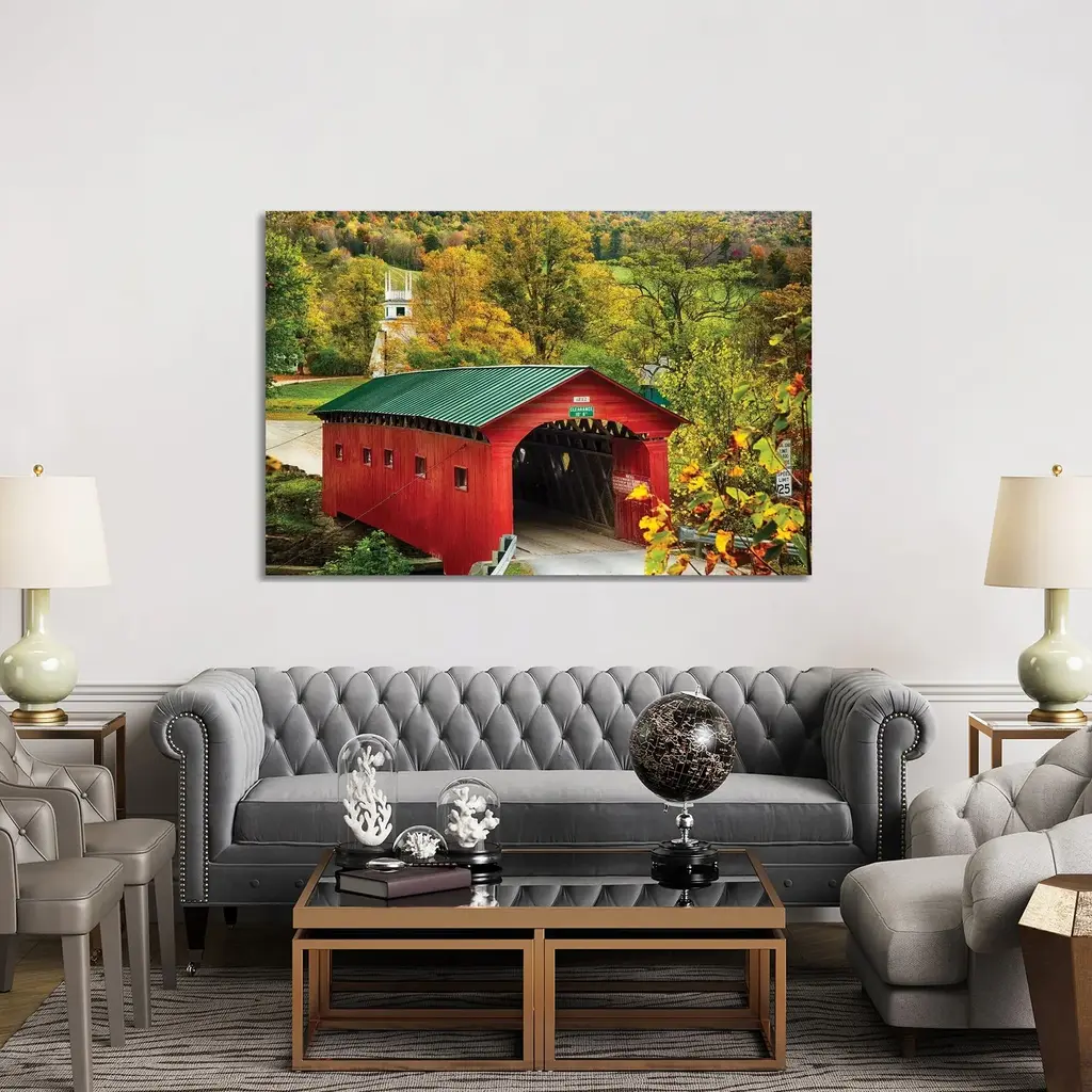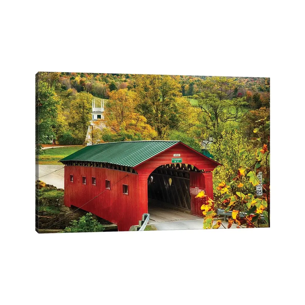 Icanvas "Scenic Covered Bridge Of West Arlington, Vermont" By George Oze Canvas Print - 26x40x1.5