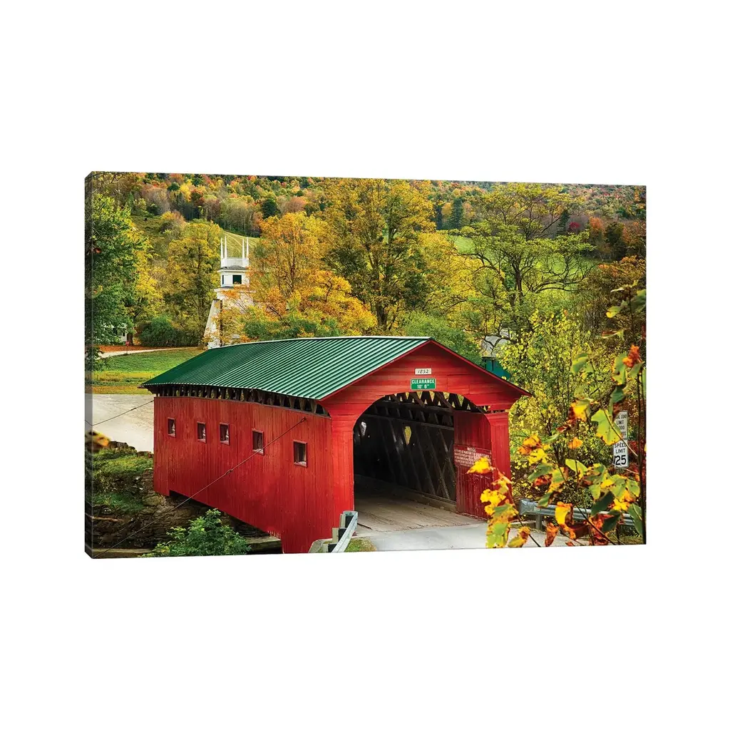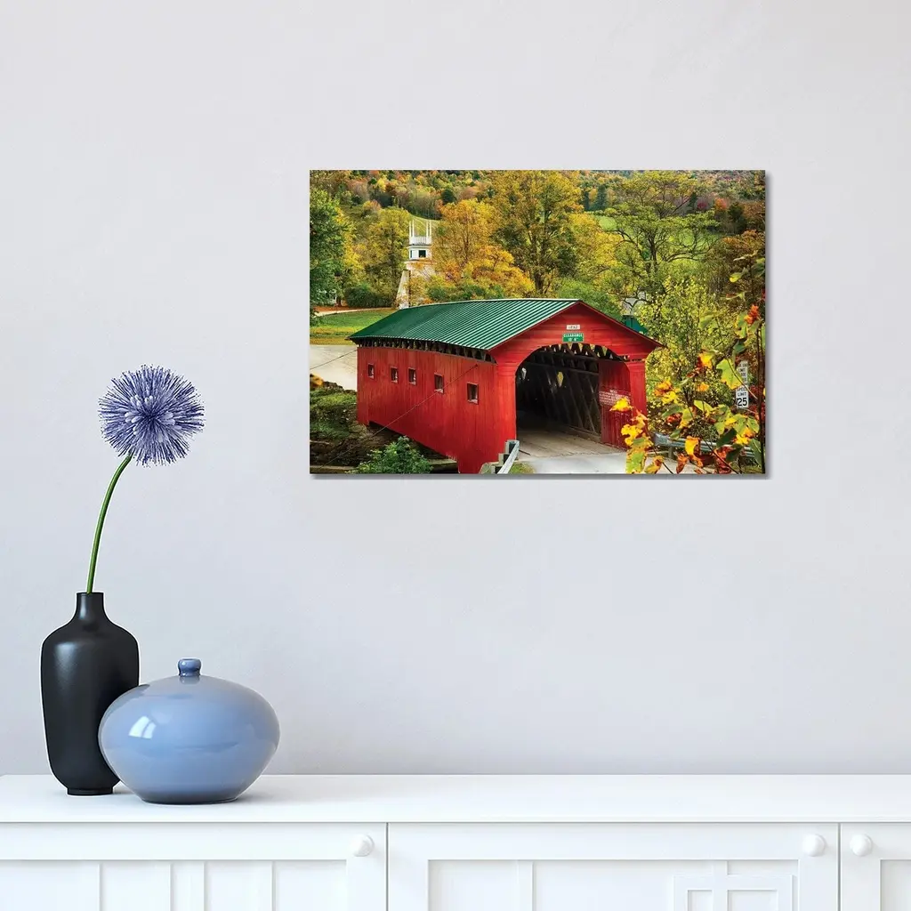 Icanvas "Scenic Covered Bridge Of West Arlington, Vermont" By George Oze Canvas Print - 8X12x0.75