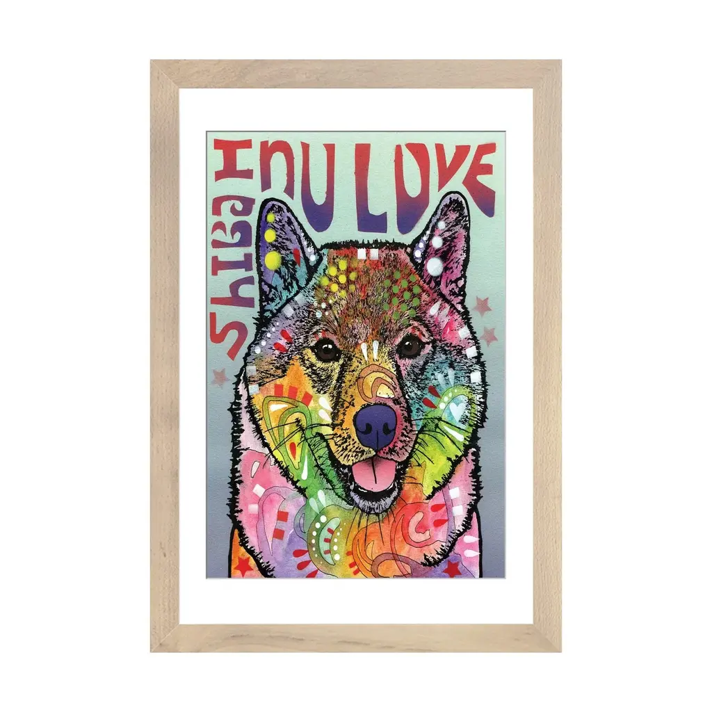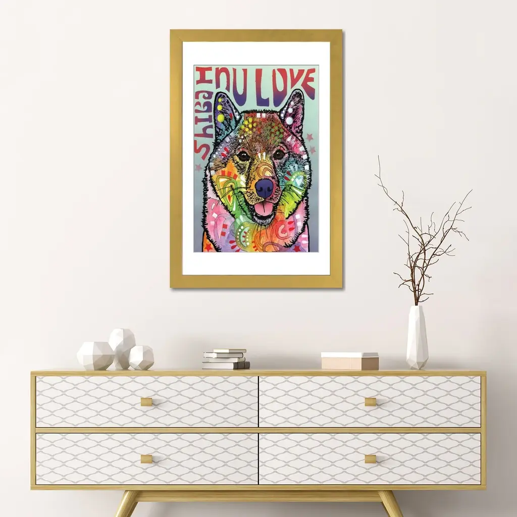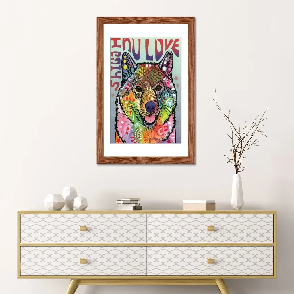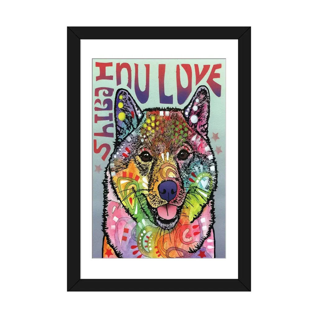 Icanvas "Shiba Inu Love" By Dean Russo - Walnut - 32x24x1