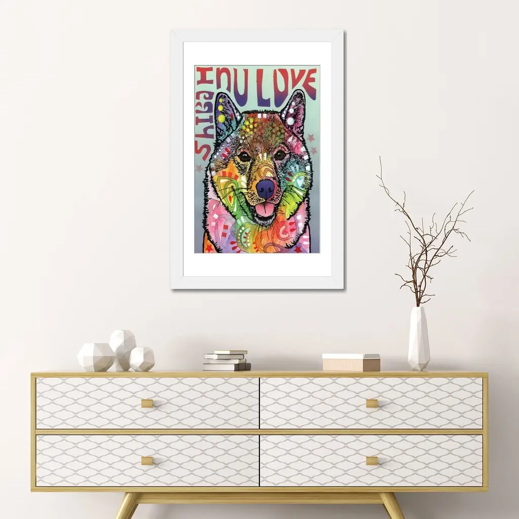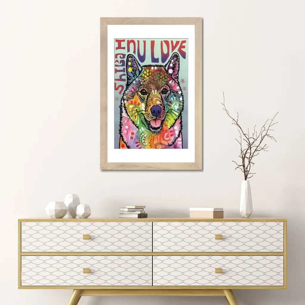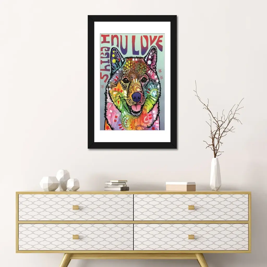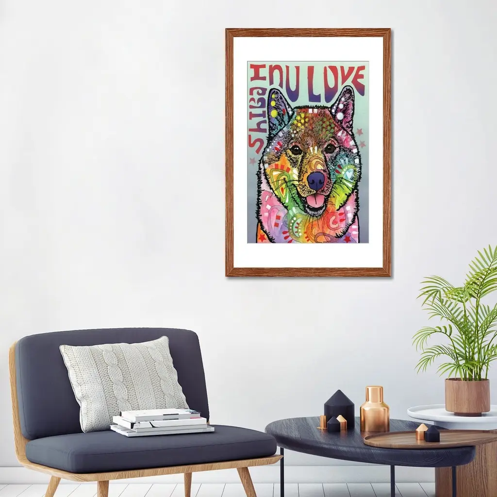 Icanvas "Shiba Inu Love" By Dean Russo - Walnut - 32x24x1