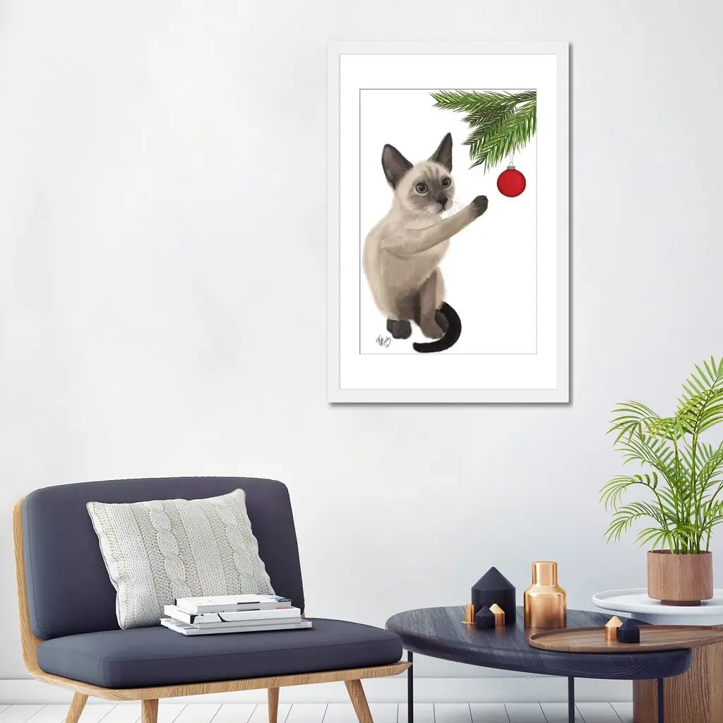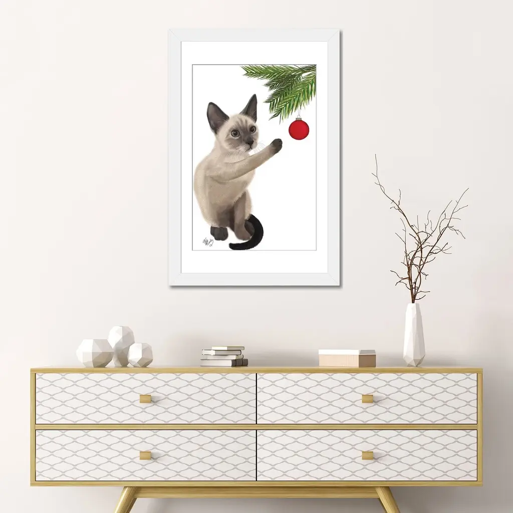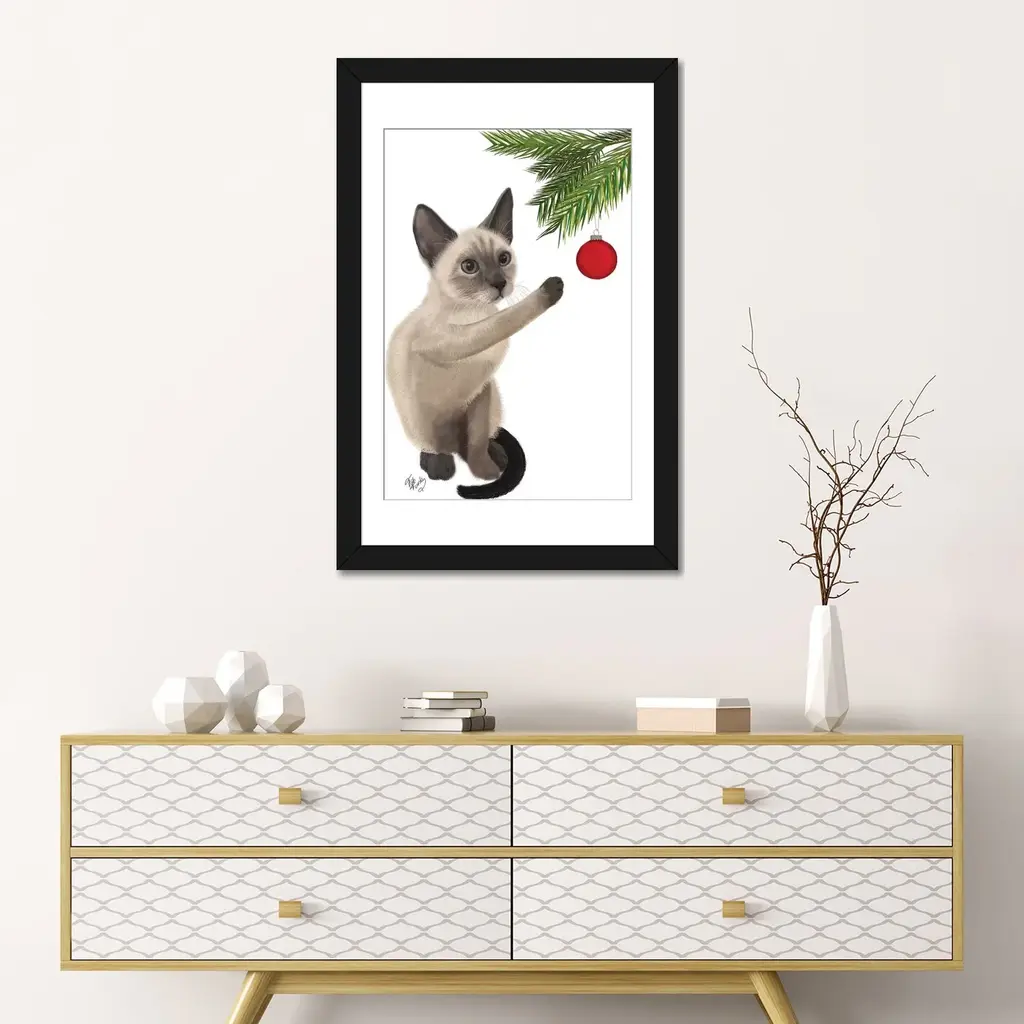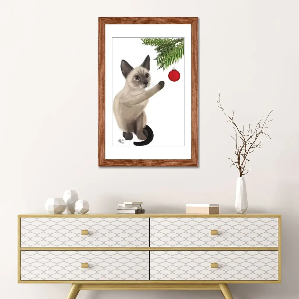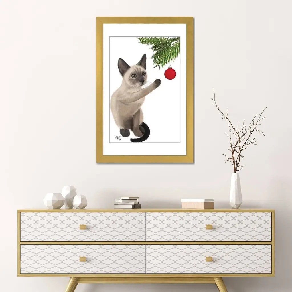Icanvas "Siamese Cat And Bauble" By Fab Funky - Gold - 24x16x1