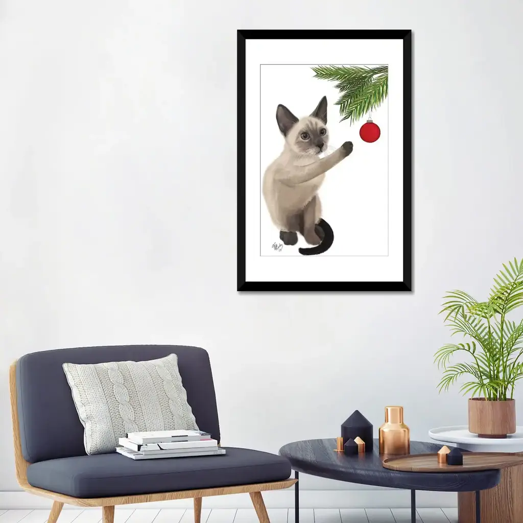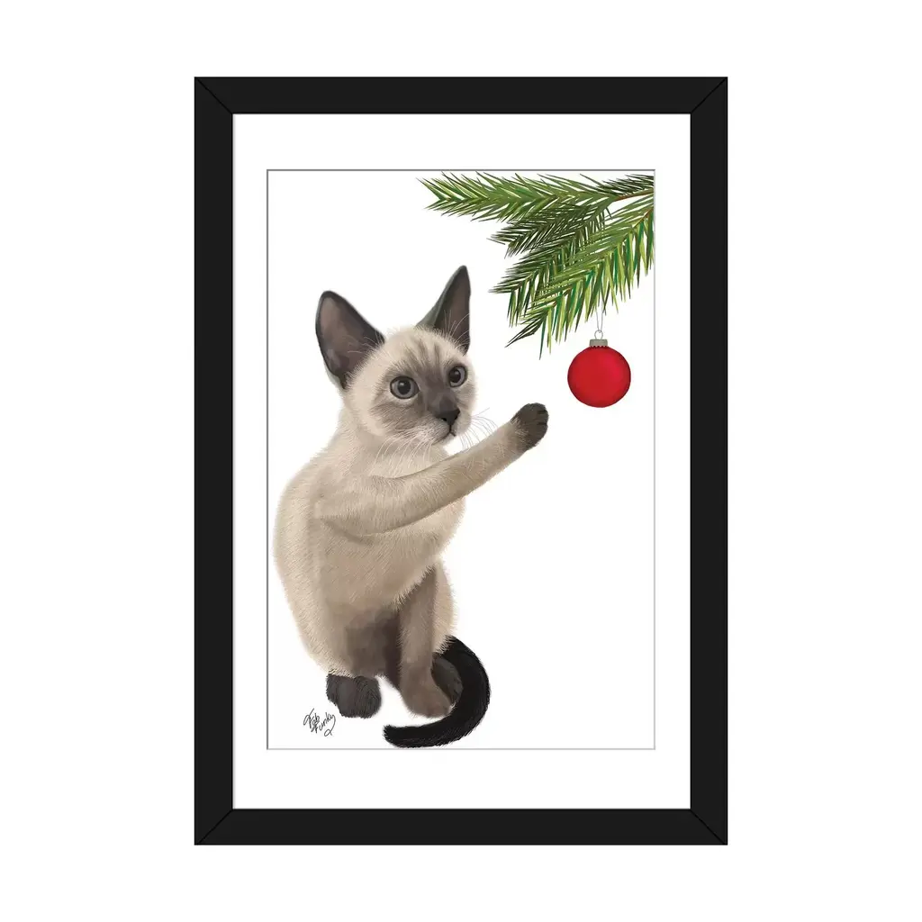 Icanvas "Siamese Cat And Bauble" By Fab Funky - Natural - 32x24x1