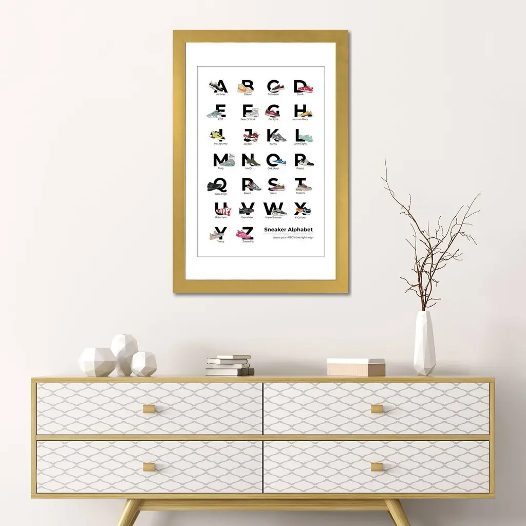 Icanvas "Sneaker Alphabet" By Avesix - Gold - 32x24x1