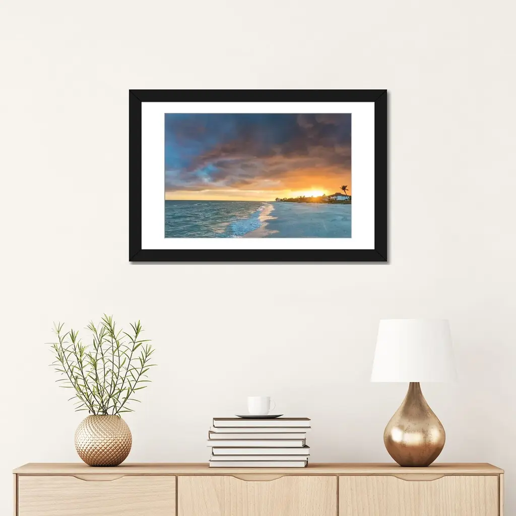 Icanvas "Sunset Clouds Over The Gulf Of Mexico On Sanibel Island In Florida, Usa" By Chuck Haney - Gold - 24x32x1