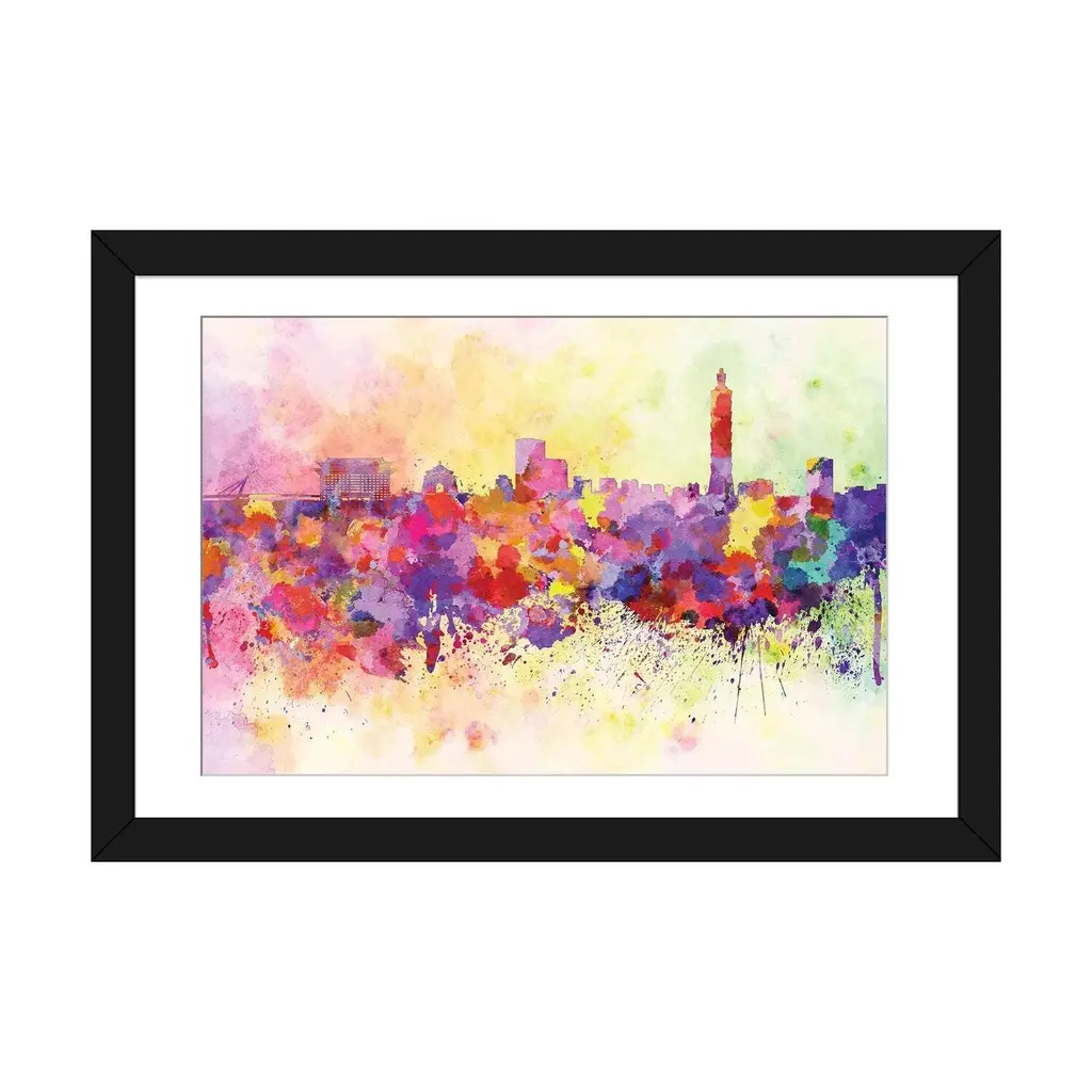 Icanvas "Taipei Skyline In Watercolor Background" By Paul Rommer - White - 16x24x1