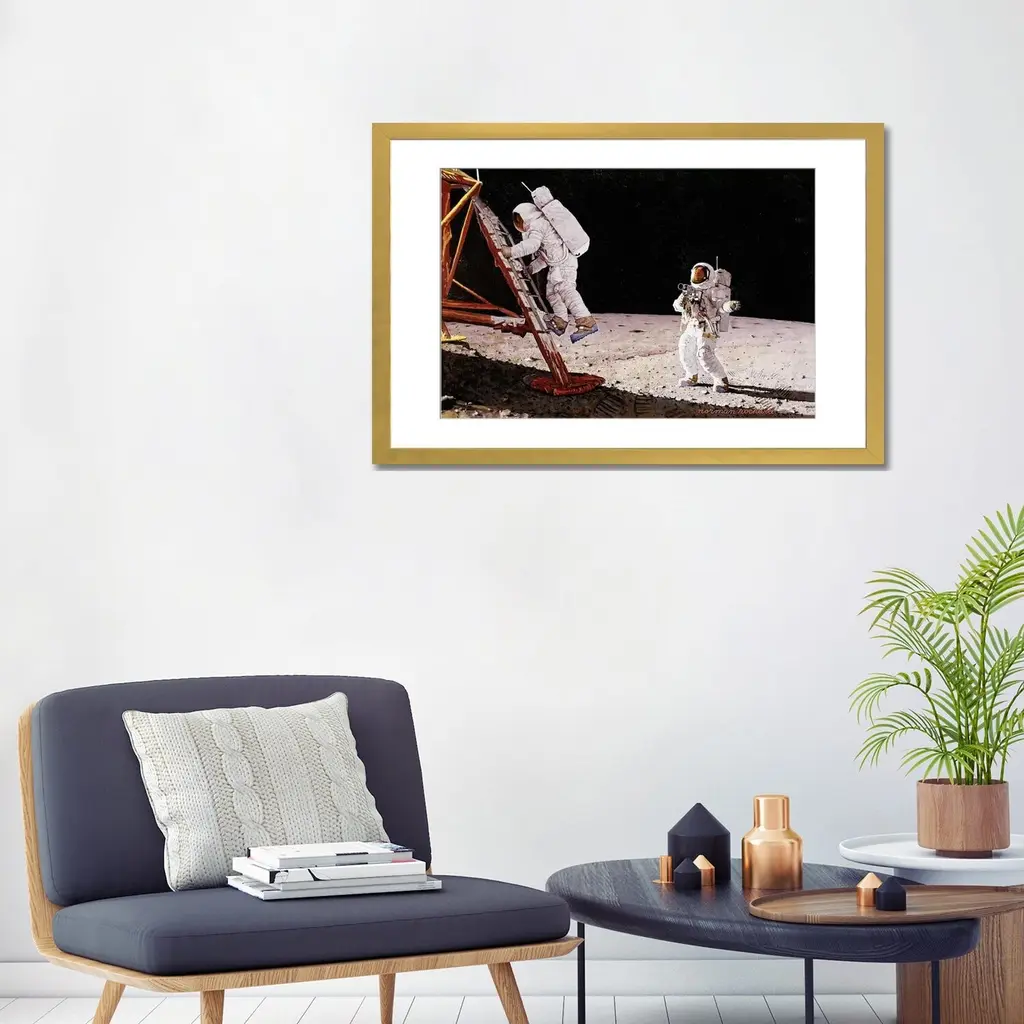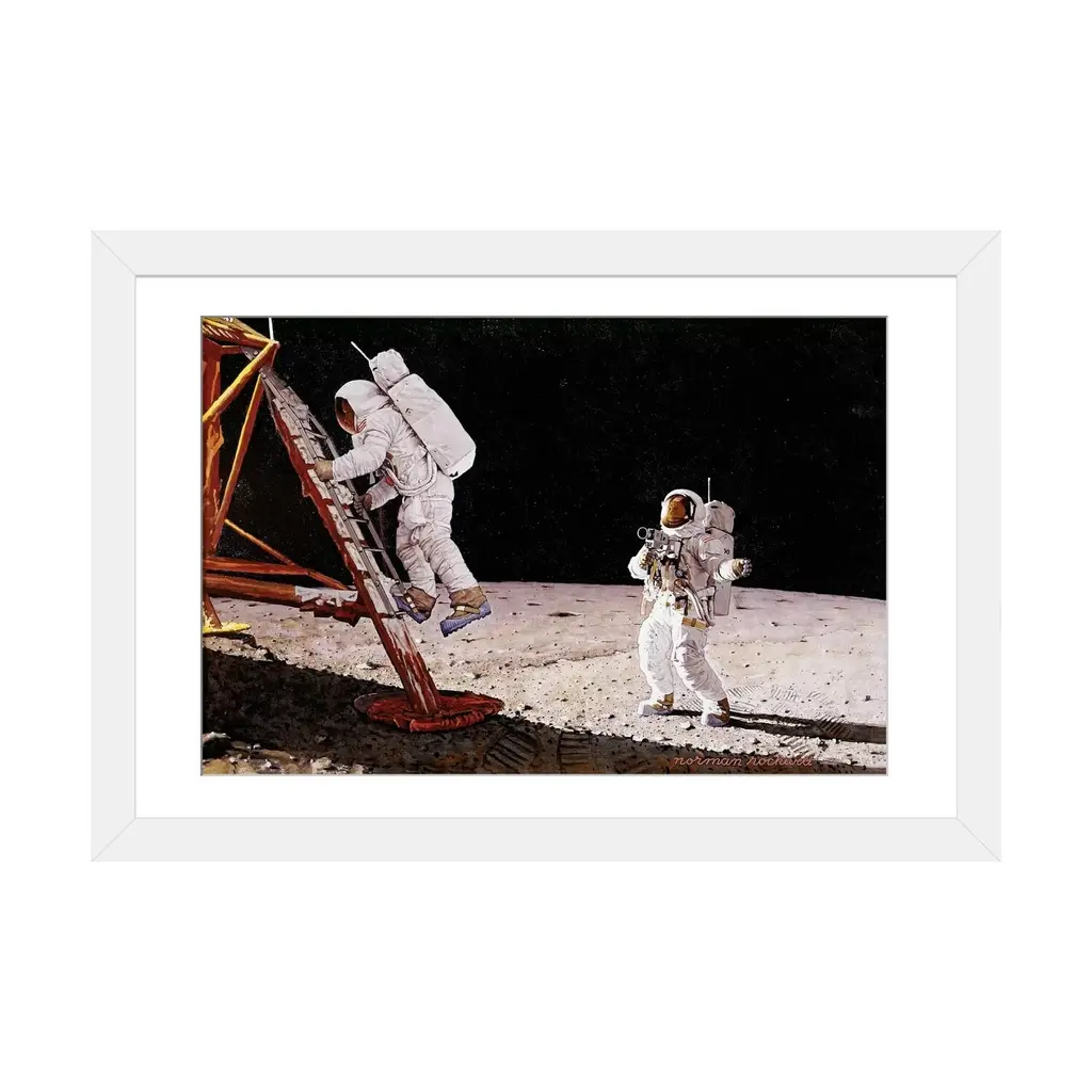 Icanvas "The Final Impossibility Man's Tracks On The Moon" By Norman Rockwell - Walnut - 16x24x1