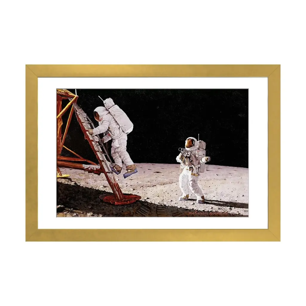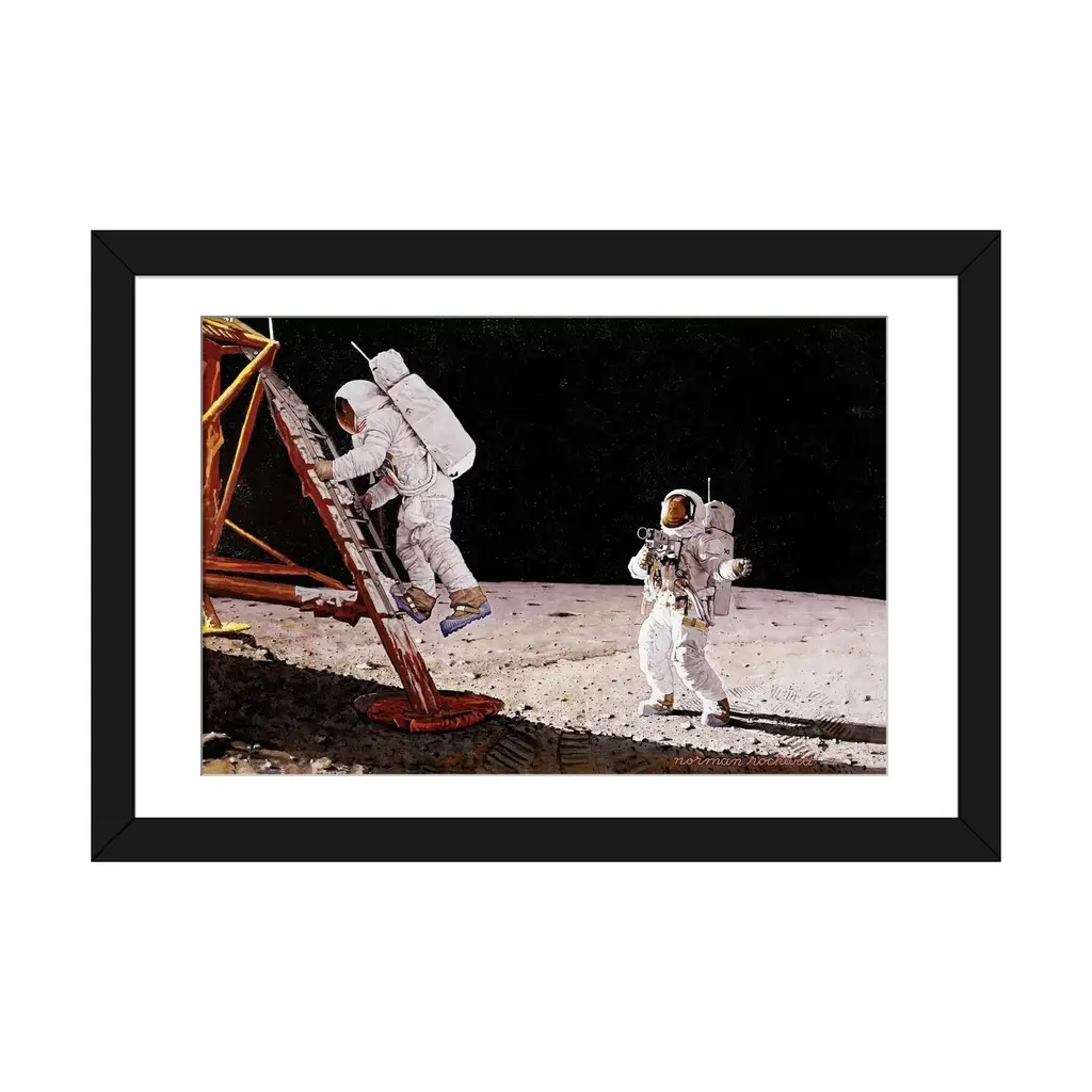 Icanvas "The Final Impossibility Man's Tracks On The Moon" By Norman Rockwell - Walnut - 24x32x1
