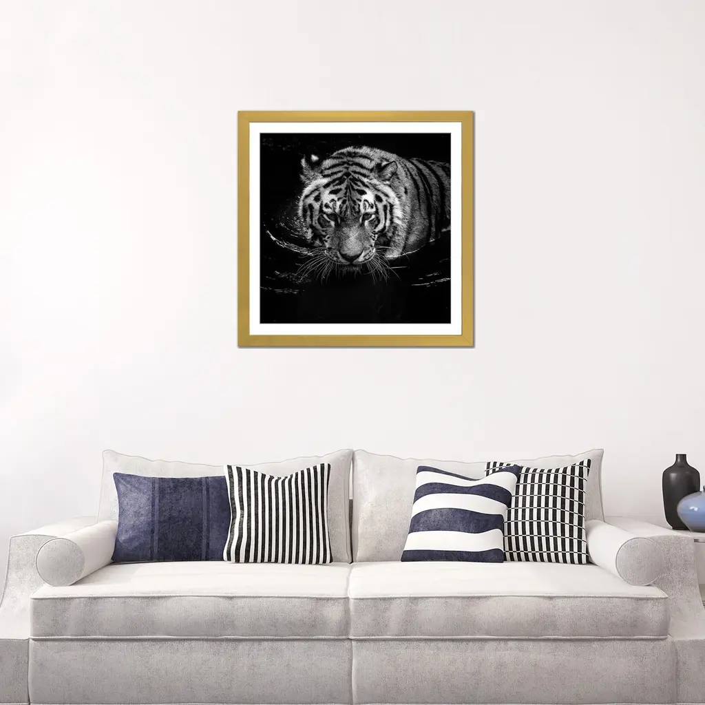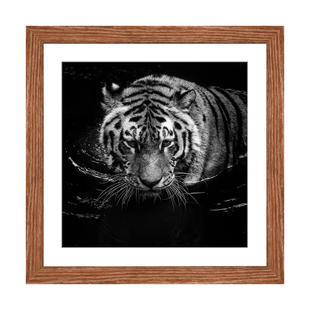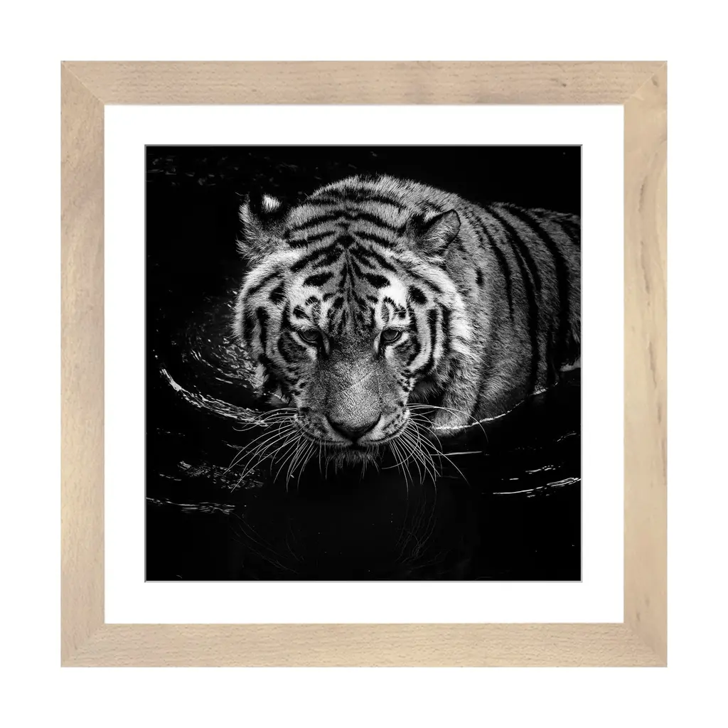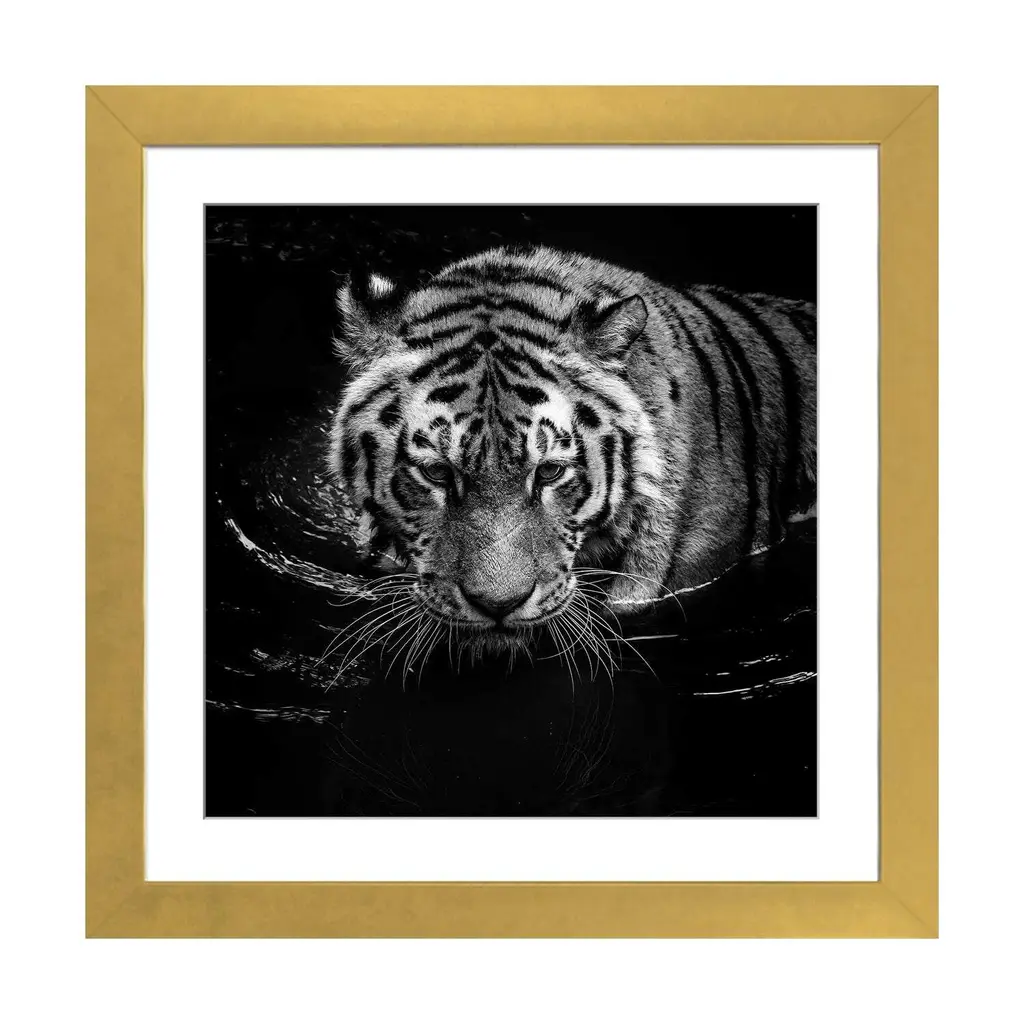 Icanvas "Tiger In Water, Black & White" By Lukas Holas Pfa - Walnut - 24x24x1