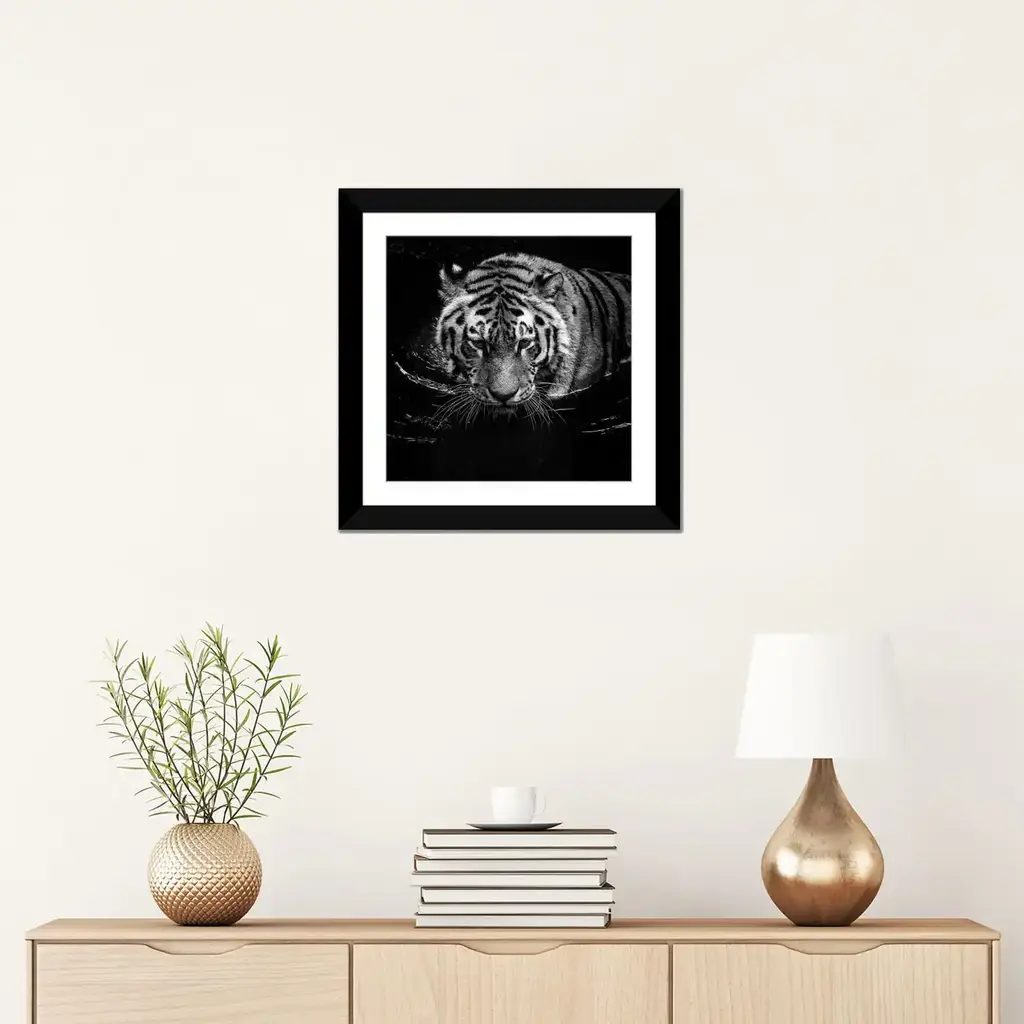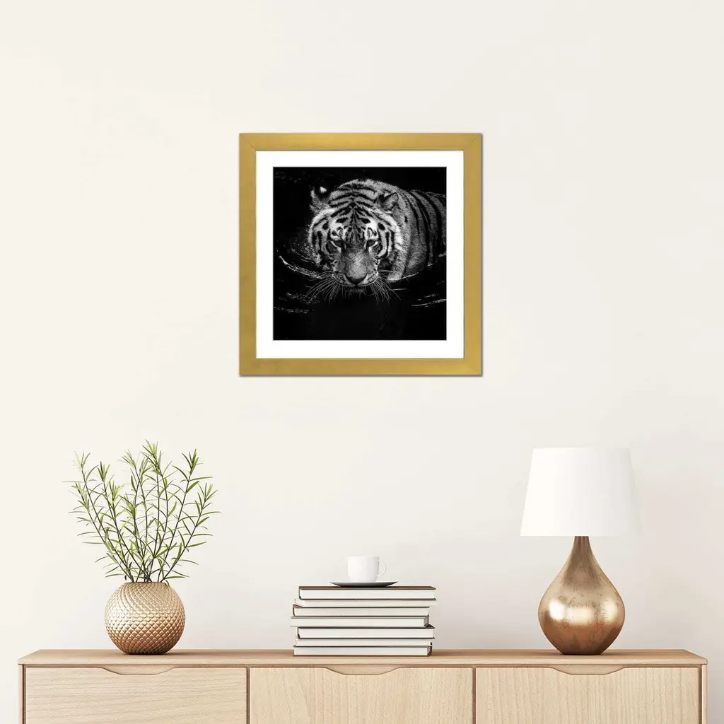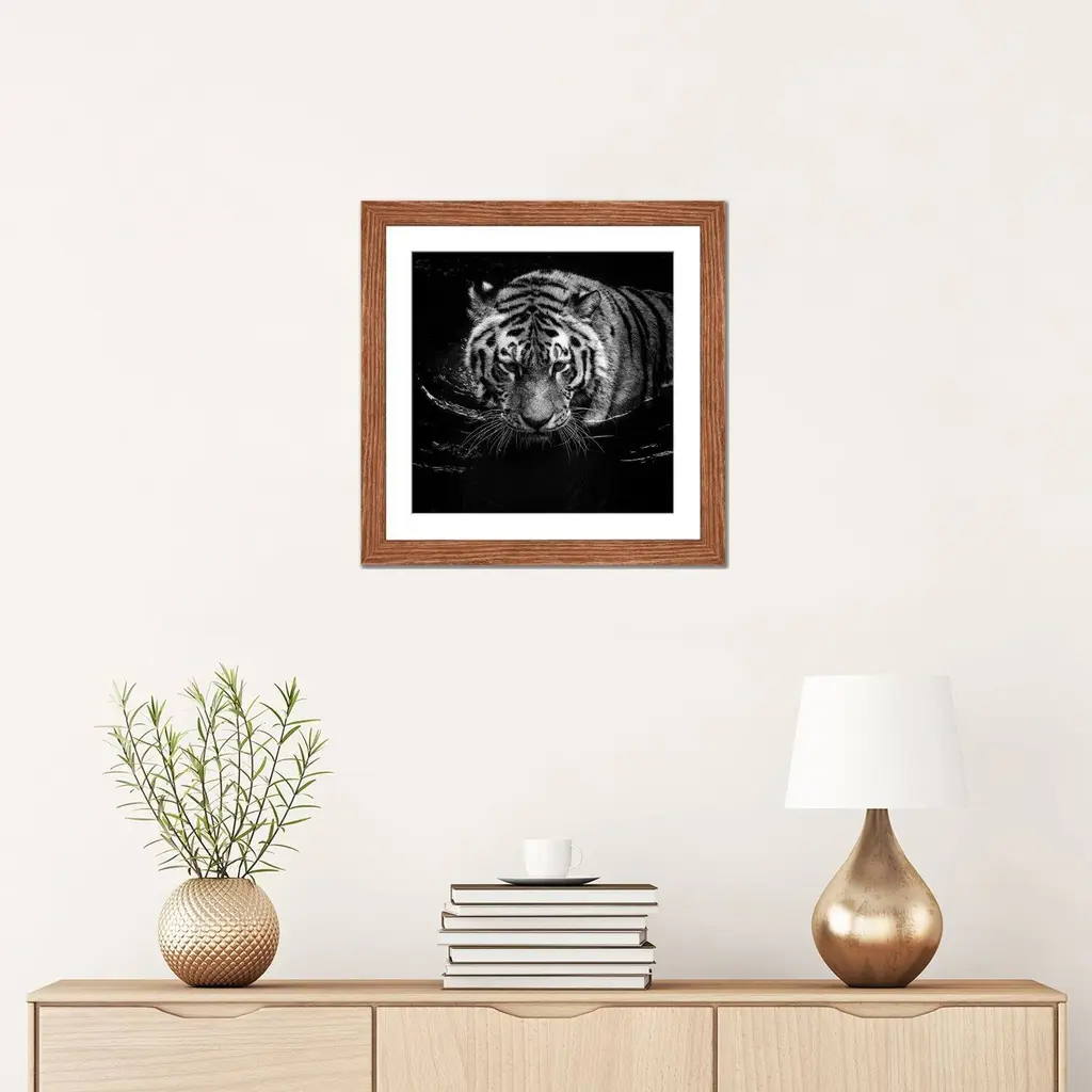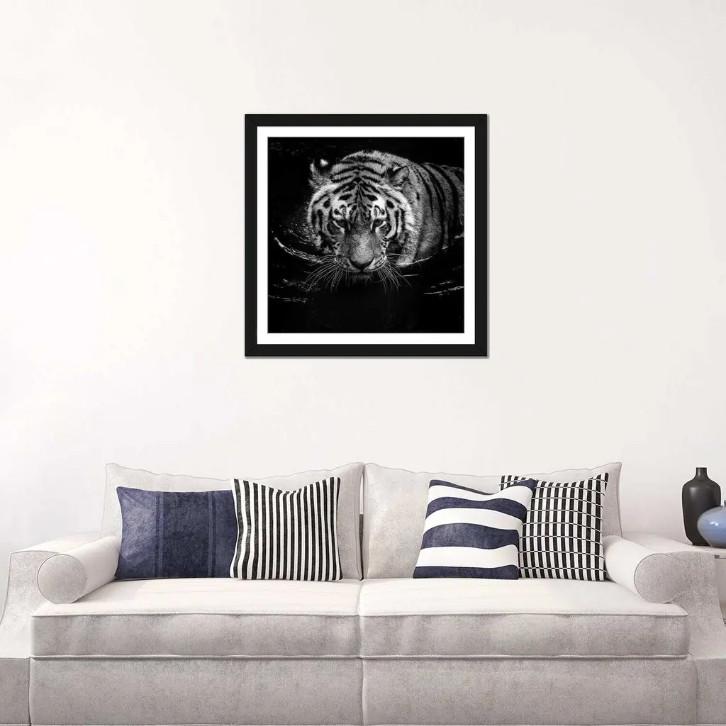 Icanvas "Tiger In Water, Black & White" By Lukas Holas Pfa - Walnut - 24x24x1