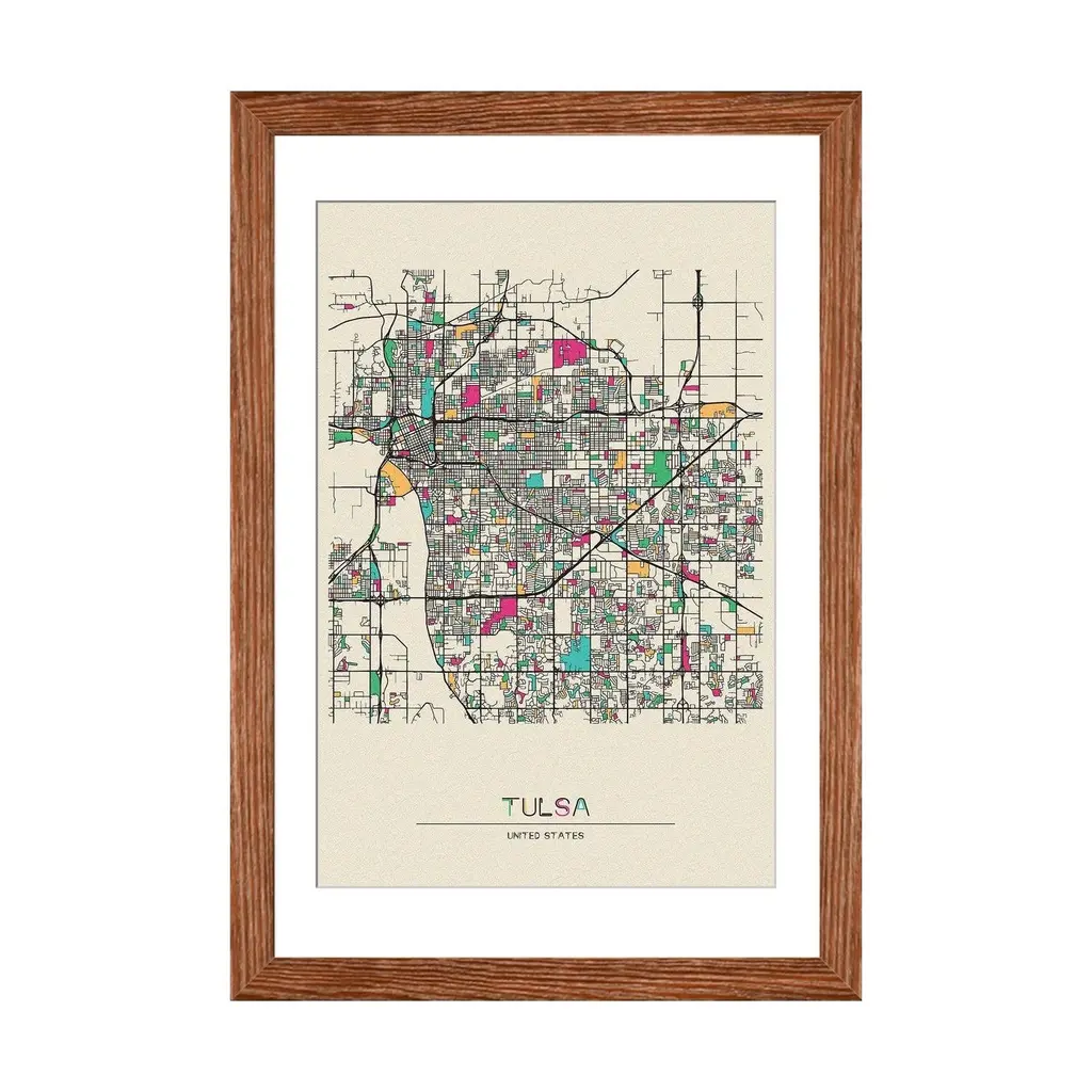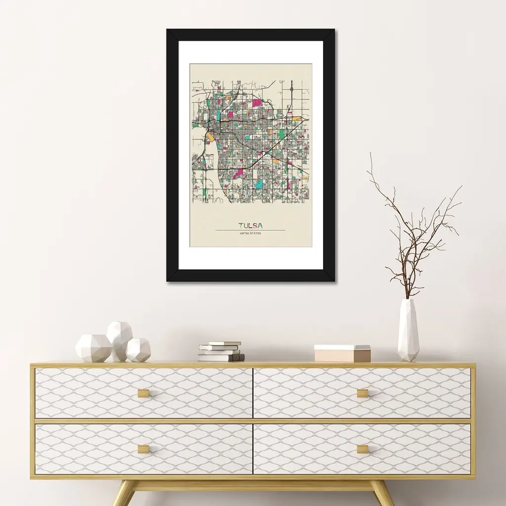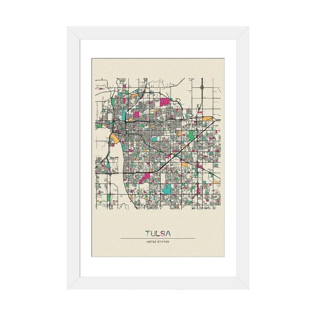 Icanvas "Tulsa, Oklahoma Map" By Ayse Deniz Akerman - Black - 24x16x1