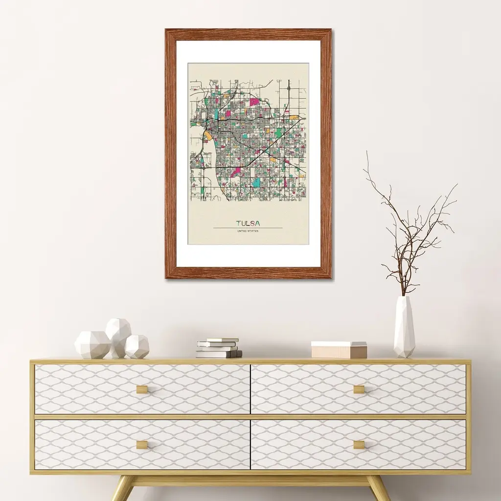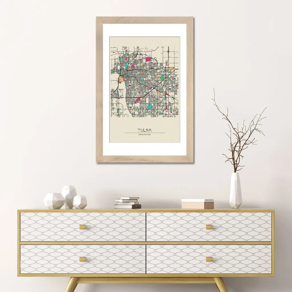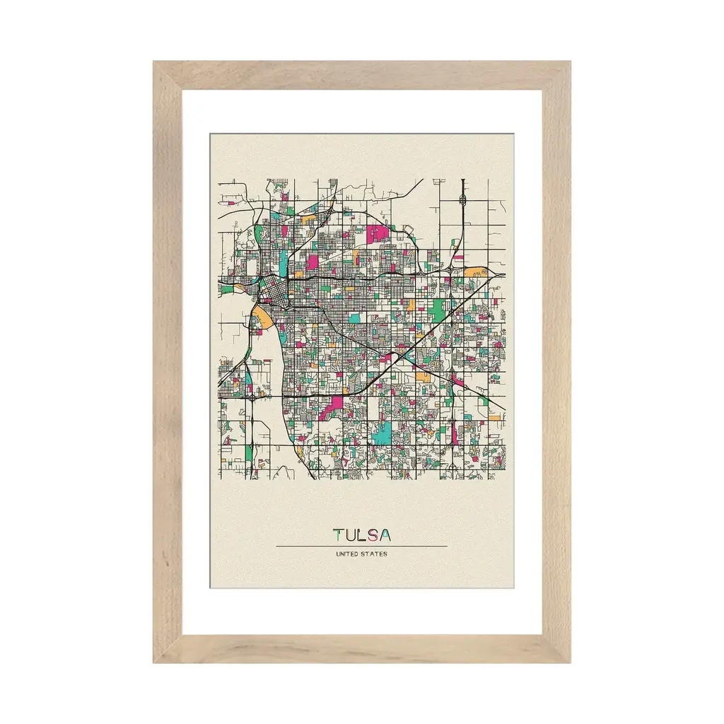 Icanvas "Tulsa, Oklahoma Map" By Ayse Deniz Akerman - Black - 24x16x1