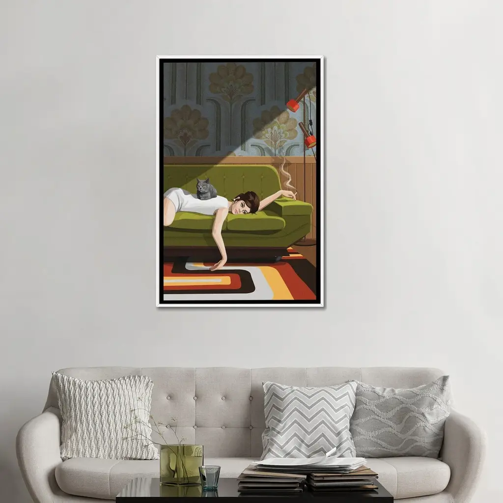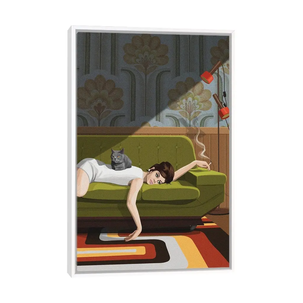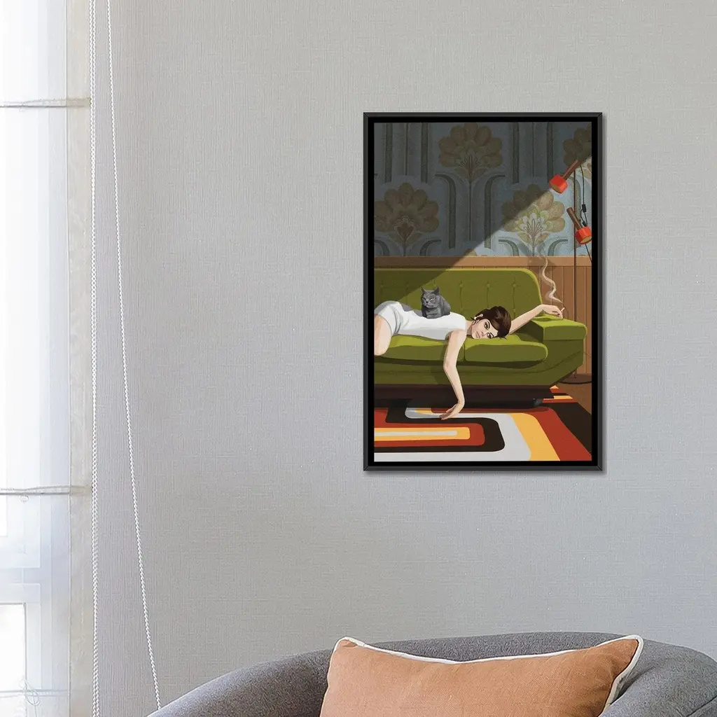 Icanvas "Waiting Game" By Artcatillustrated Framed Canvas Print - Black - 48x32