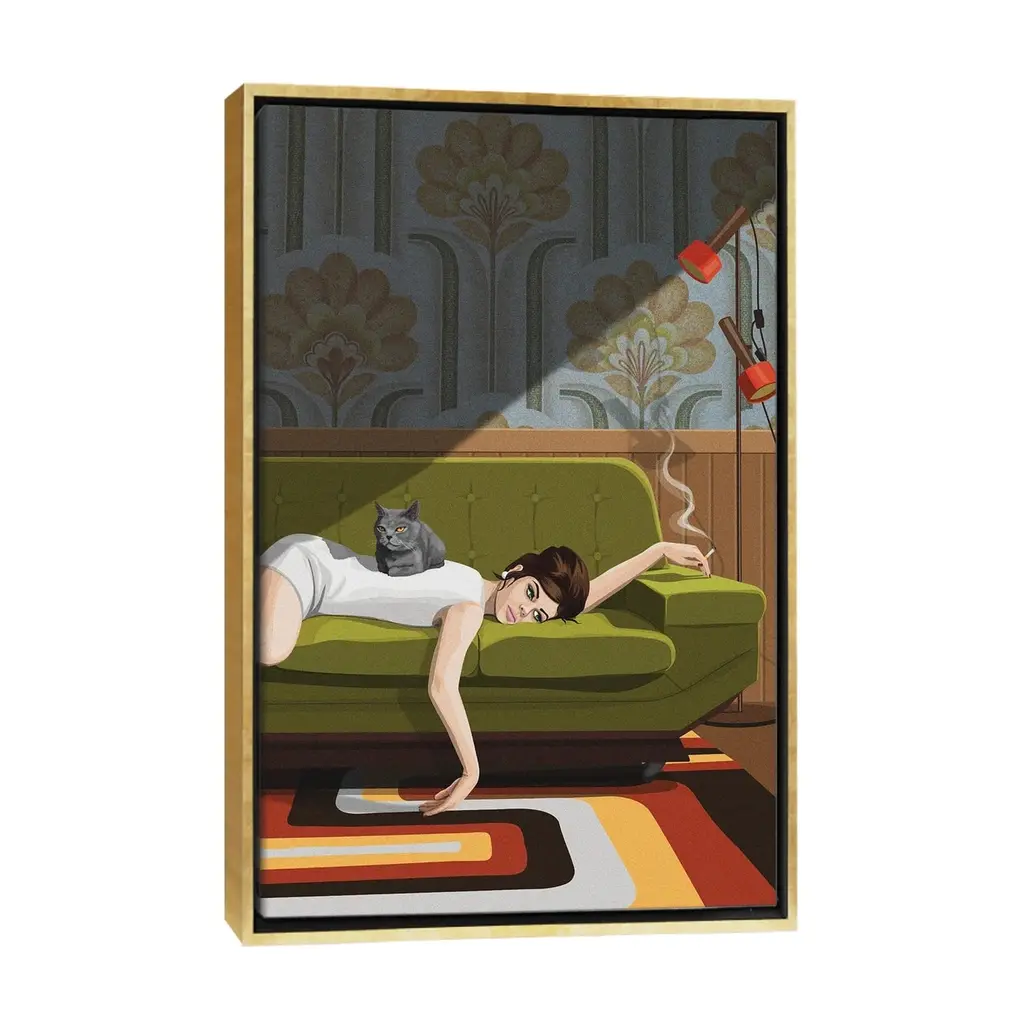 Icanvas "Waiting Game" By Artcatillustrated Framed Canvas Print - Gold - 26x18