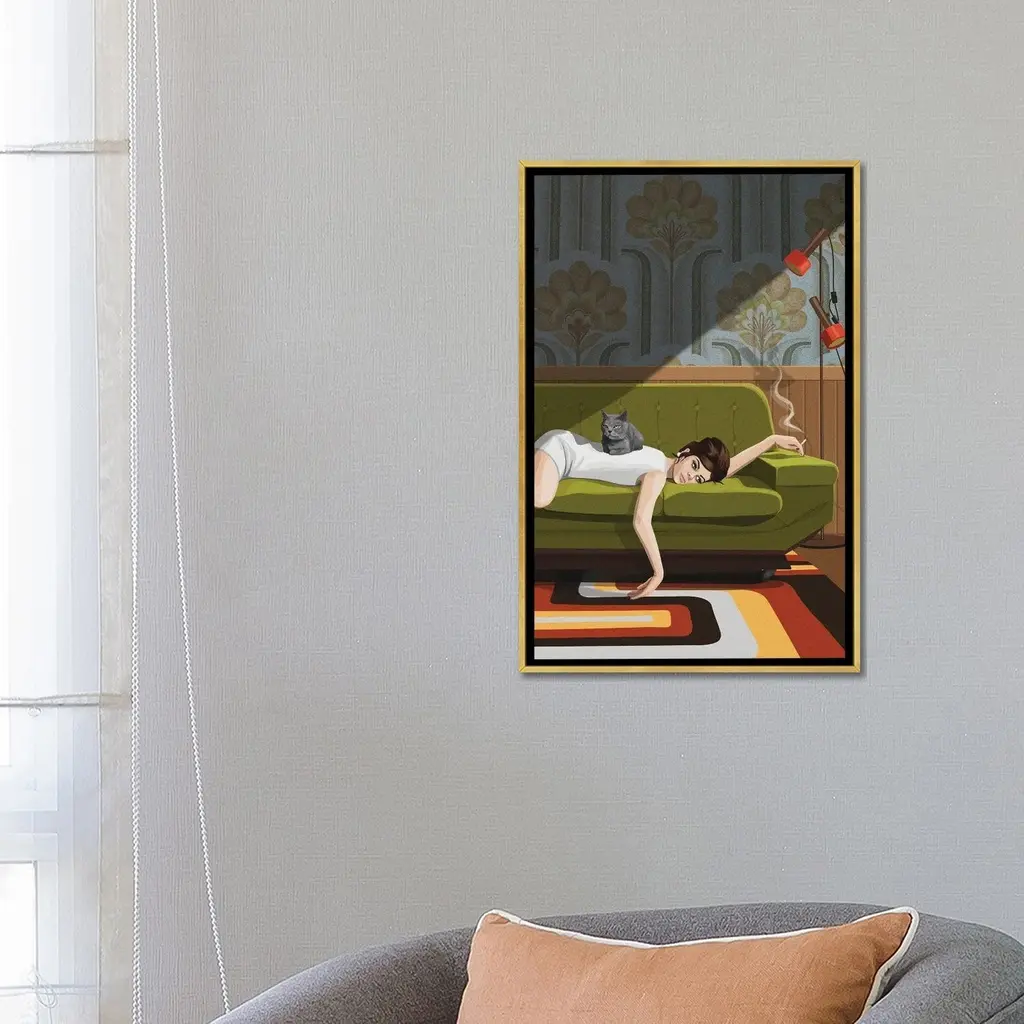 Icanvas "Waiting Game" By Artcatillustrated Framed Canvas Print - White - 26x18