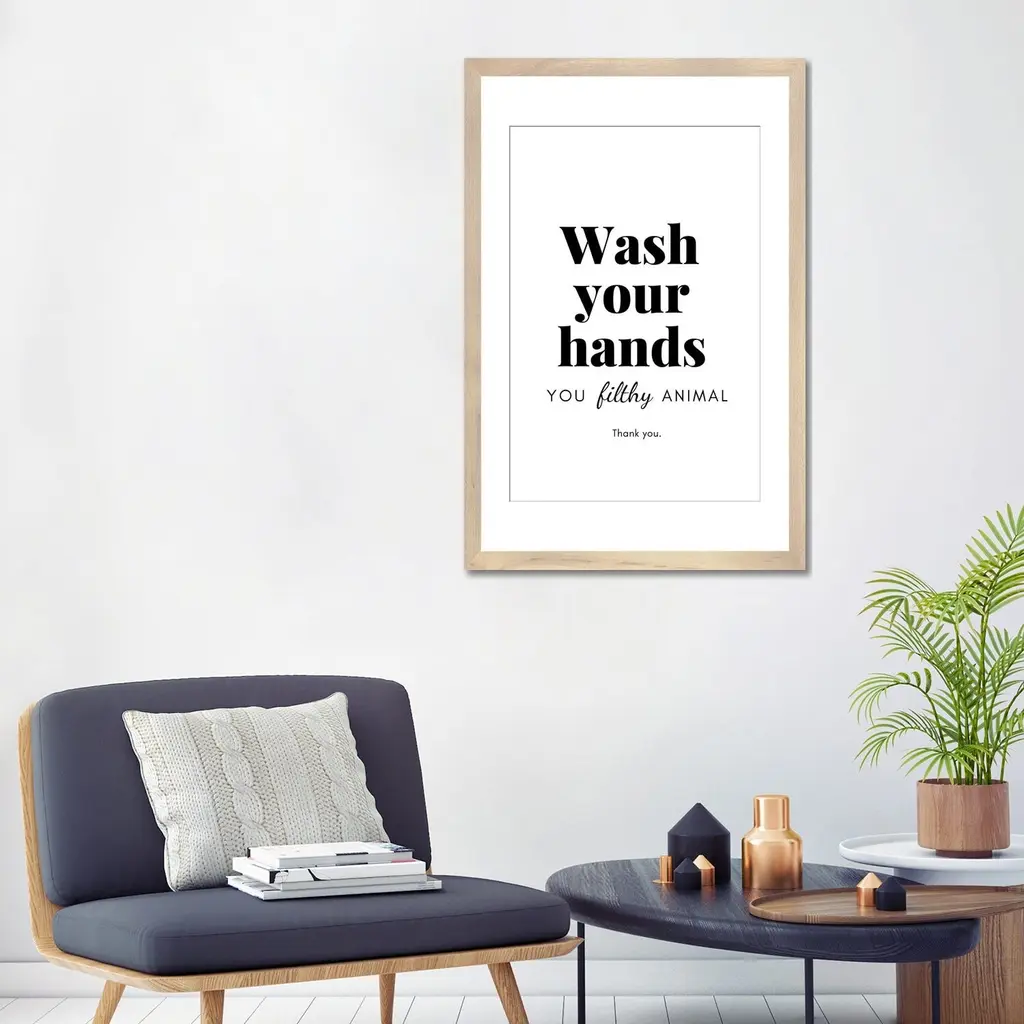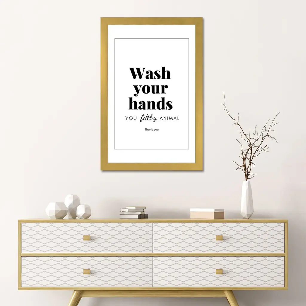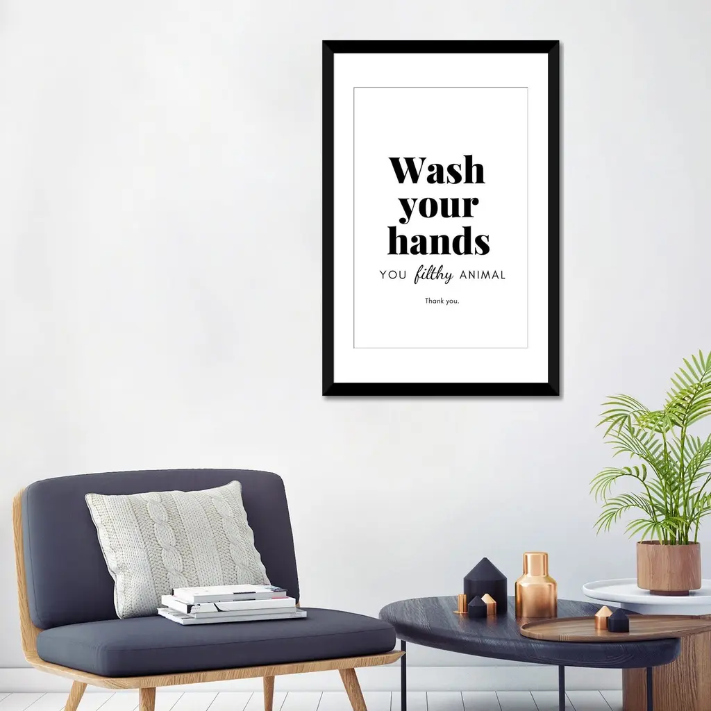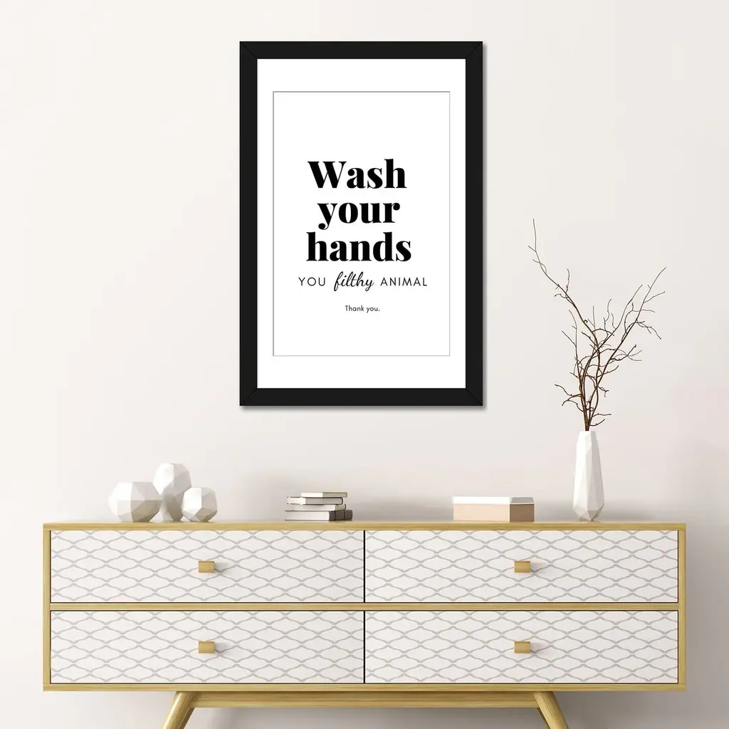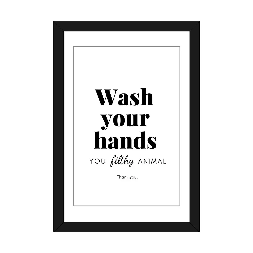 Icanvas "Wash Your Hands You Filthy Animal Bathroom" By Design Harvest - Black - 32x24x1